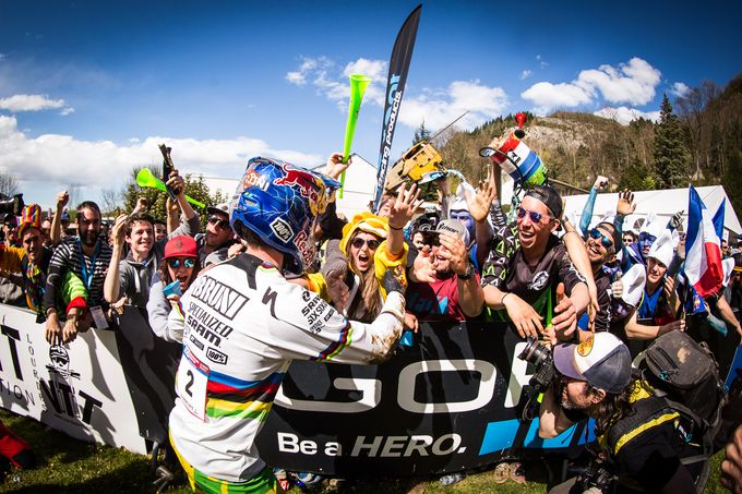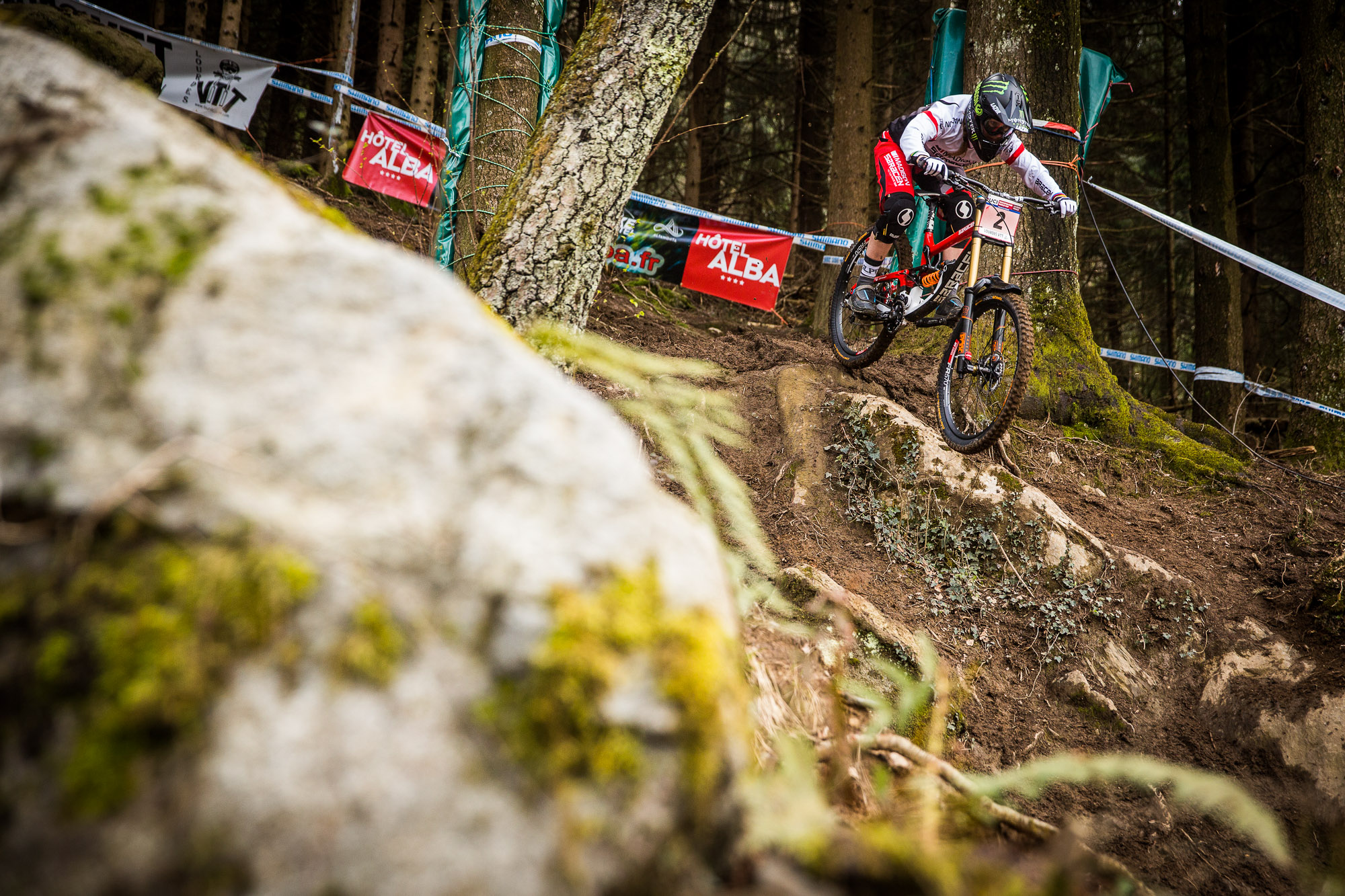 Bruni’s run was blisteringly quick and, despite a serious moment that spat him off his pedals after the second road gap, he had a 2.3 second advantage over Gwin at the fourth split. Unfortunately, with the finish line in sight, Bruni washed out and threw away yet another golden opportunity to take his first World Cup win. It made for one of the most exciting World Cup finishes in recent years though and proved (once again) that Bruni has the raw pace to challenge Gwin’s dominance.