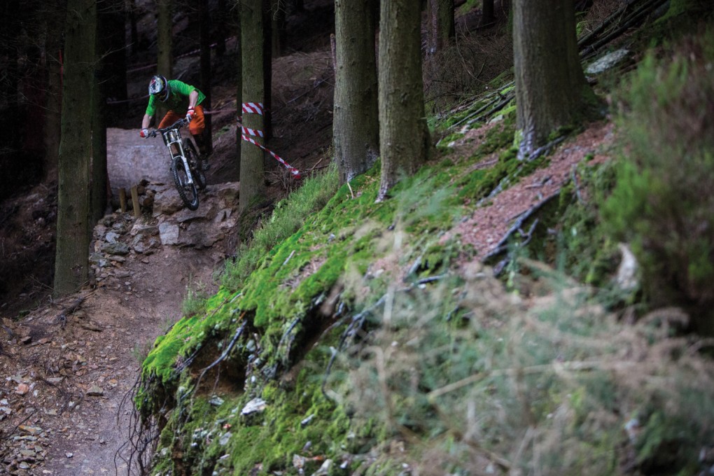 Ignorant as I was about the topography of the land I wasn’t expecting too much and I was confident that the borrowed Mondraker Kaiser rattling away in the back of the van was going to be too much bike. I couldn’t have been more wrong. Gawton, and specifically the two black graded trails of ‘Super Tavi’ and ‘Egypt’ are as a ball–shrinkingly intimidating as they get. There are sections in both that require some serious bike handling skill and commitment, and when it gets wet then even more so. It is ‘all or nothing’ for only the most confident of riders, and it was a fitting place to inherit the ‘Dirt 1:04’ moniker from a challenging and rocky hillside in Wales a couple of years back. Search ‘Gawton 1:04’ on the Dirt website and you will be treated to some short riding lessons from some of the worlds best posting some plain ‘silly’ times down ‘Super Tavi’…it will also give you an insight (once you have ridden there) as to how some of the top riders go around some of the more tricky steep and tight switchbacks, of which there are many. Mind warping stuff.
