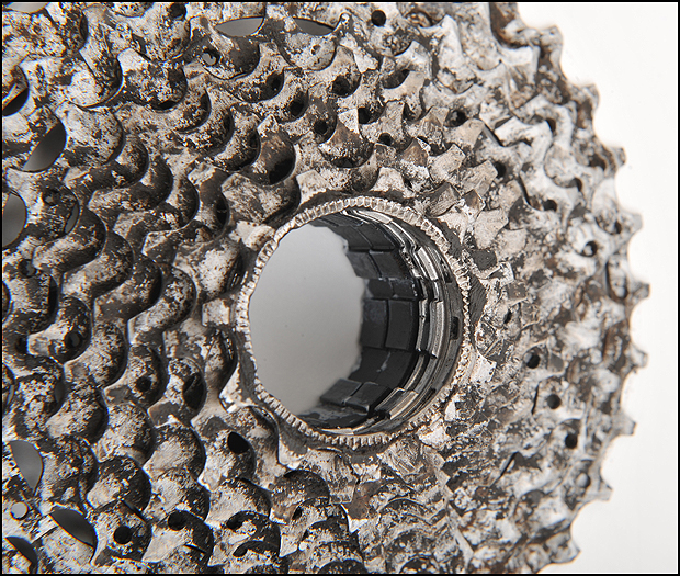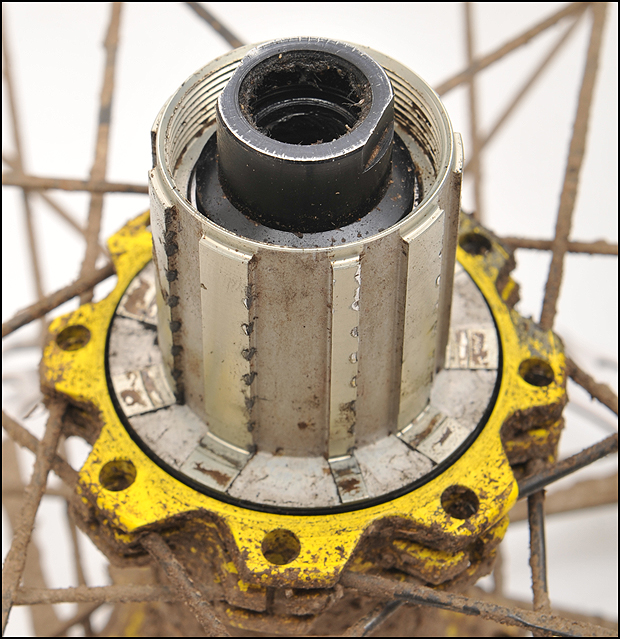The matching fat bit that you can see here on the freehub body. You just need to make sure that when you’re putting it all on you don’t miss out any spacers. If you have missed some it’ll become obvious pretty quickly as some of the cogs will be far too close together.