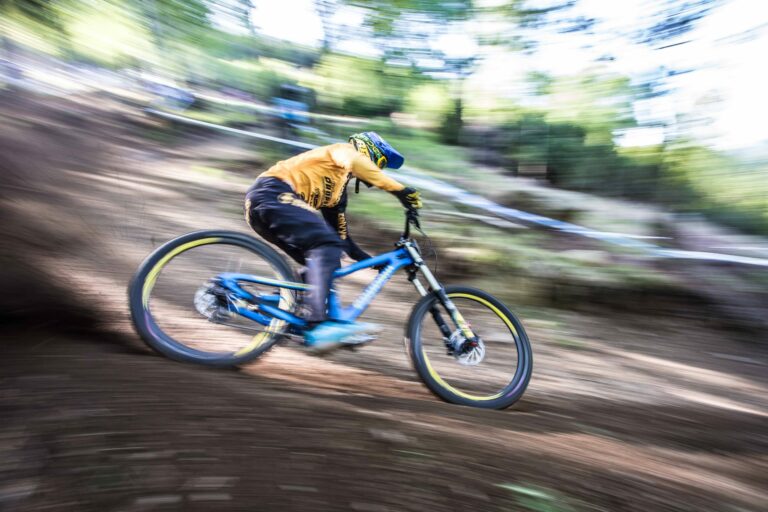 The main thing we’ve found is that you’re able to carry more speed on the 29” wheel and you’re a bit more stable due to the greater self-correcting nature of the bigger wheels, so you can drive in more “monster truck” like. Also, the bump frequency changes a bit when compared to going through the same section on 27.5” wheels. Fast cornering also becomes calmer on the 29” wheel which influences things as well.