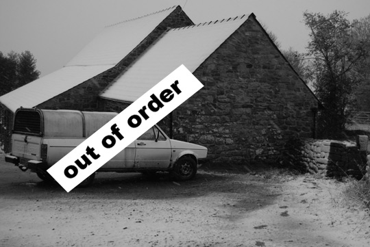 It started fluttering down with snow this afternoon. I don’t mind, but seeing as the caddy has broken down I’ve got to walk home, and it’s blumin cold.