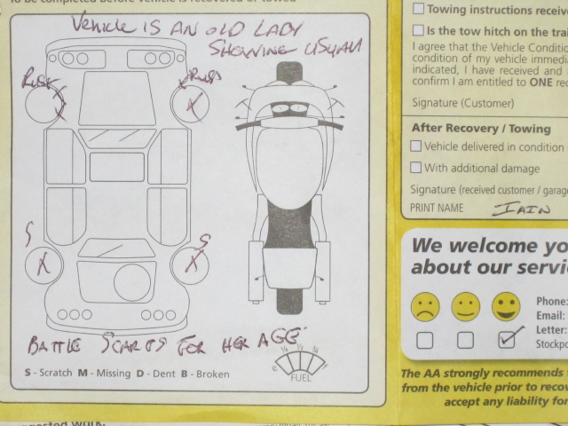 So lorry 1 and a 15 min wait for Matthew to arrive to assess my motor.