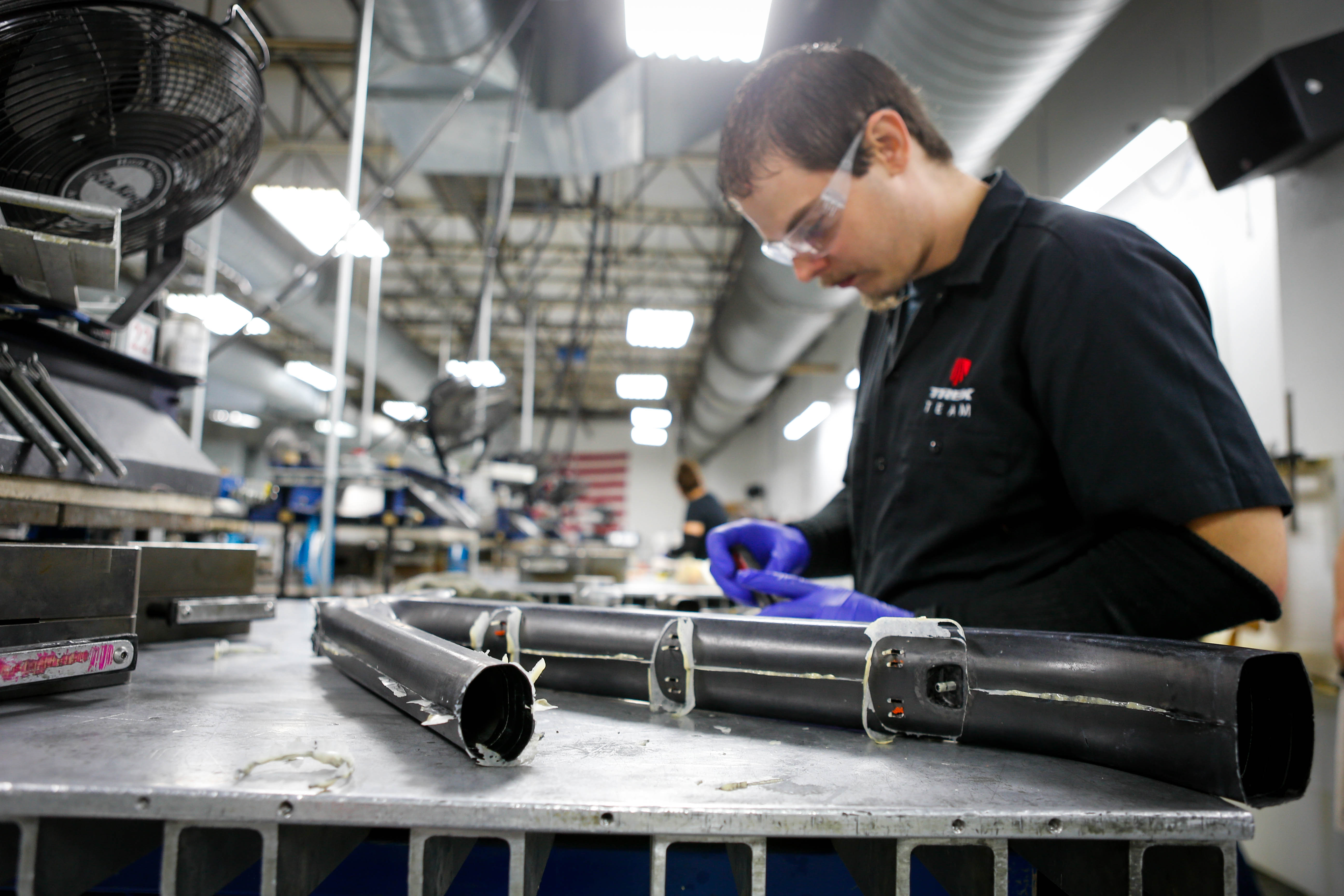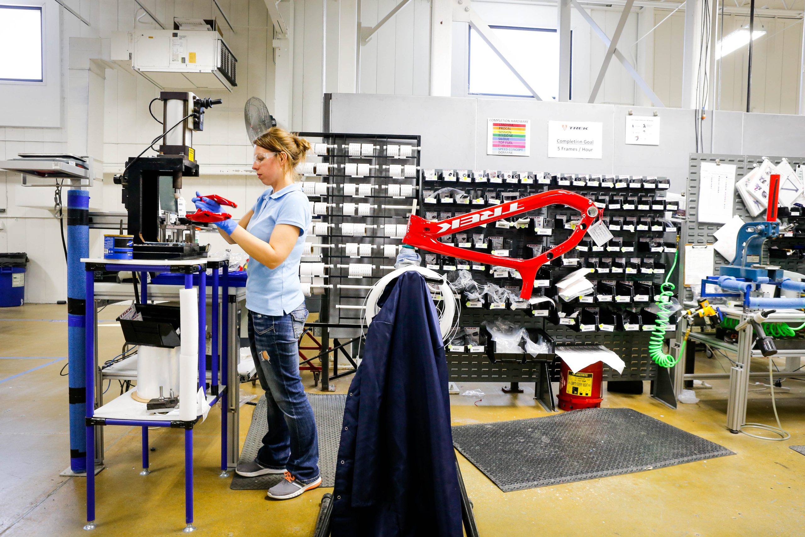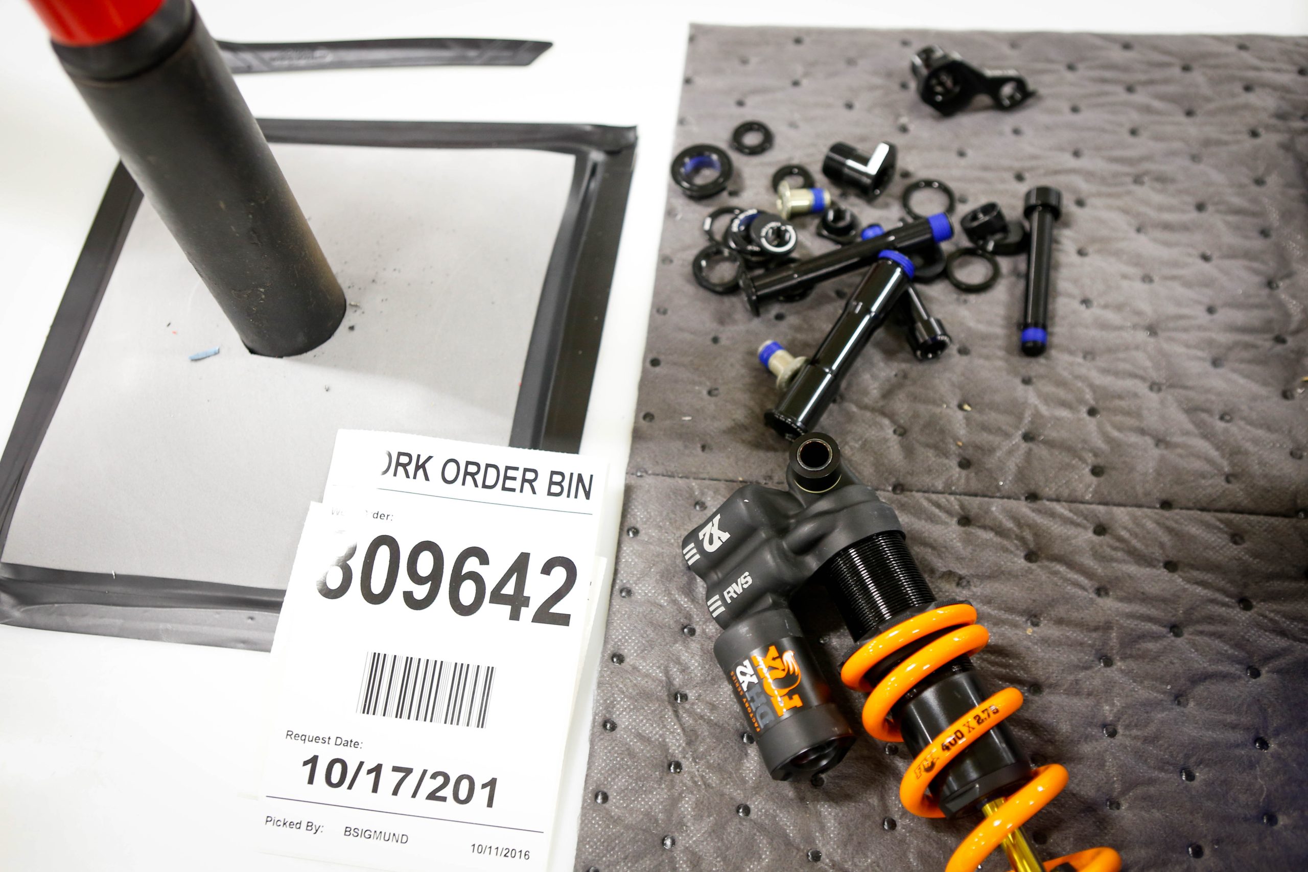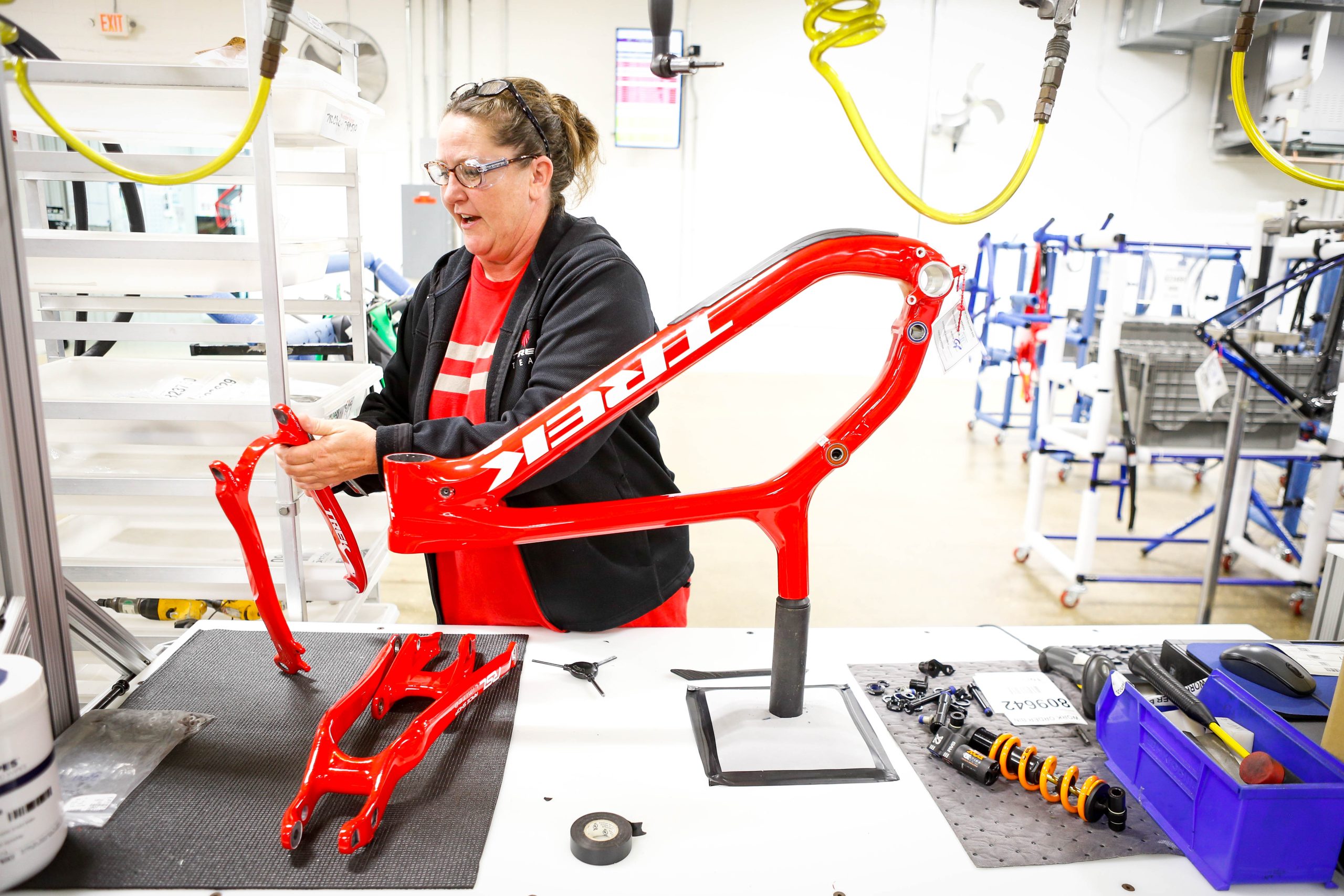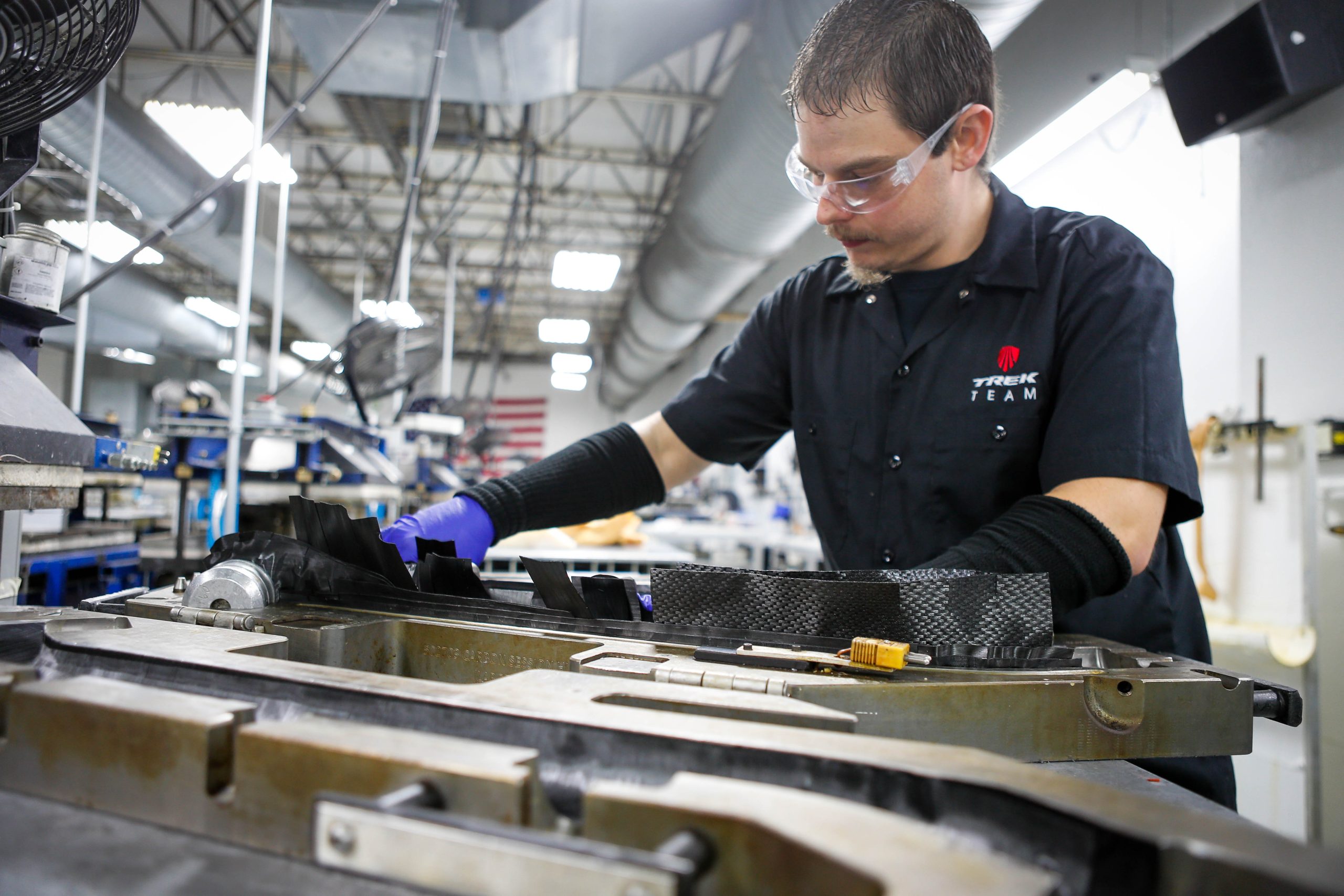 It then dawned on me that there was much more than ‘finishing’ in the air. I began scanning the workshops and in each one a new piece of the Session downhill bike would appear. A man buffing a rocker link, a front triangle being glued. Holy shit, I never knew the Session was a frame wholly created in America. My walk turned into a trot, and before I knew it I had a hat and glasses, long coat and notebook chatting to every single person who’d breathed on the Session during its making.