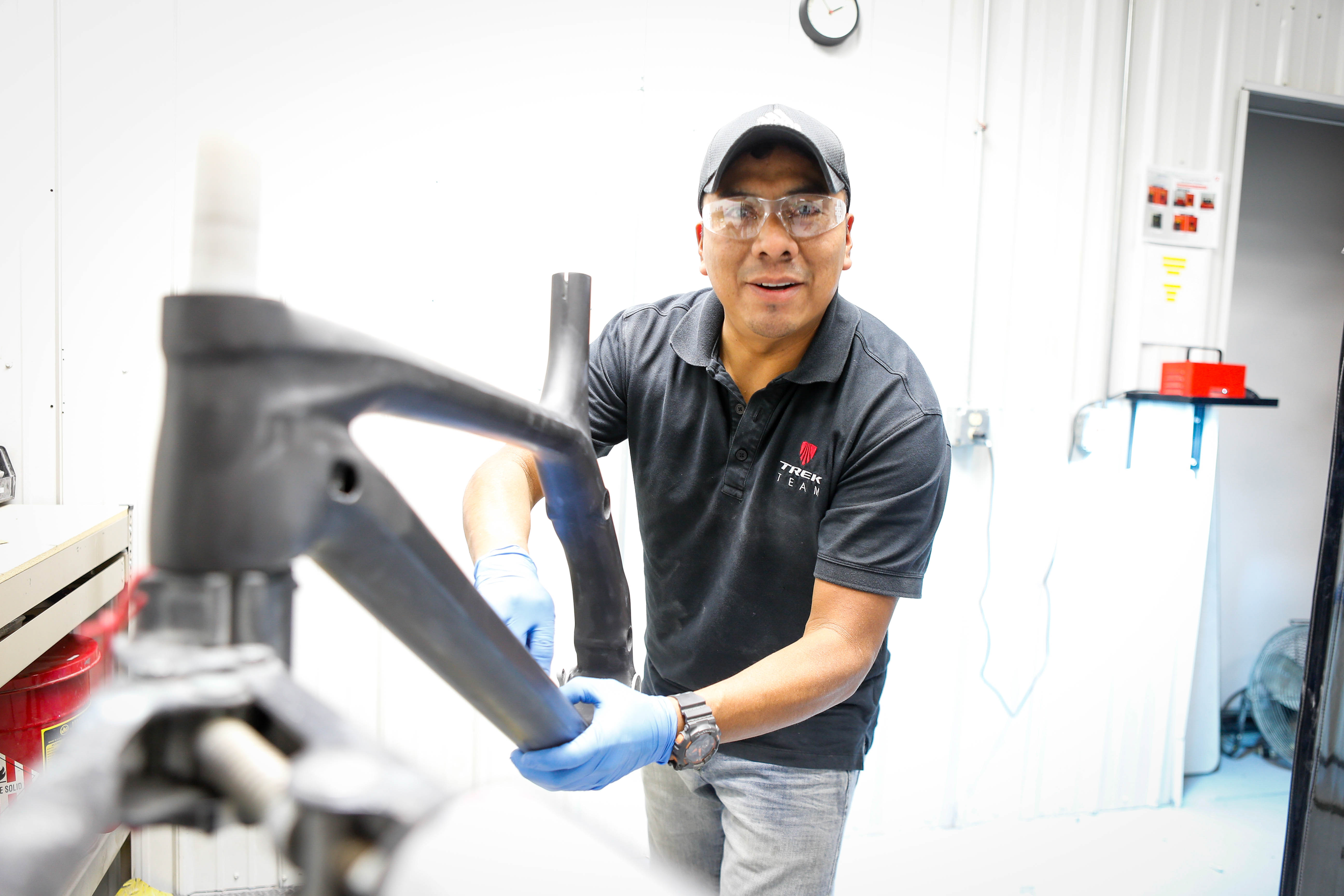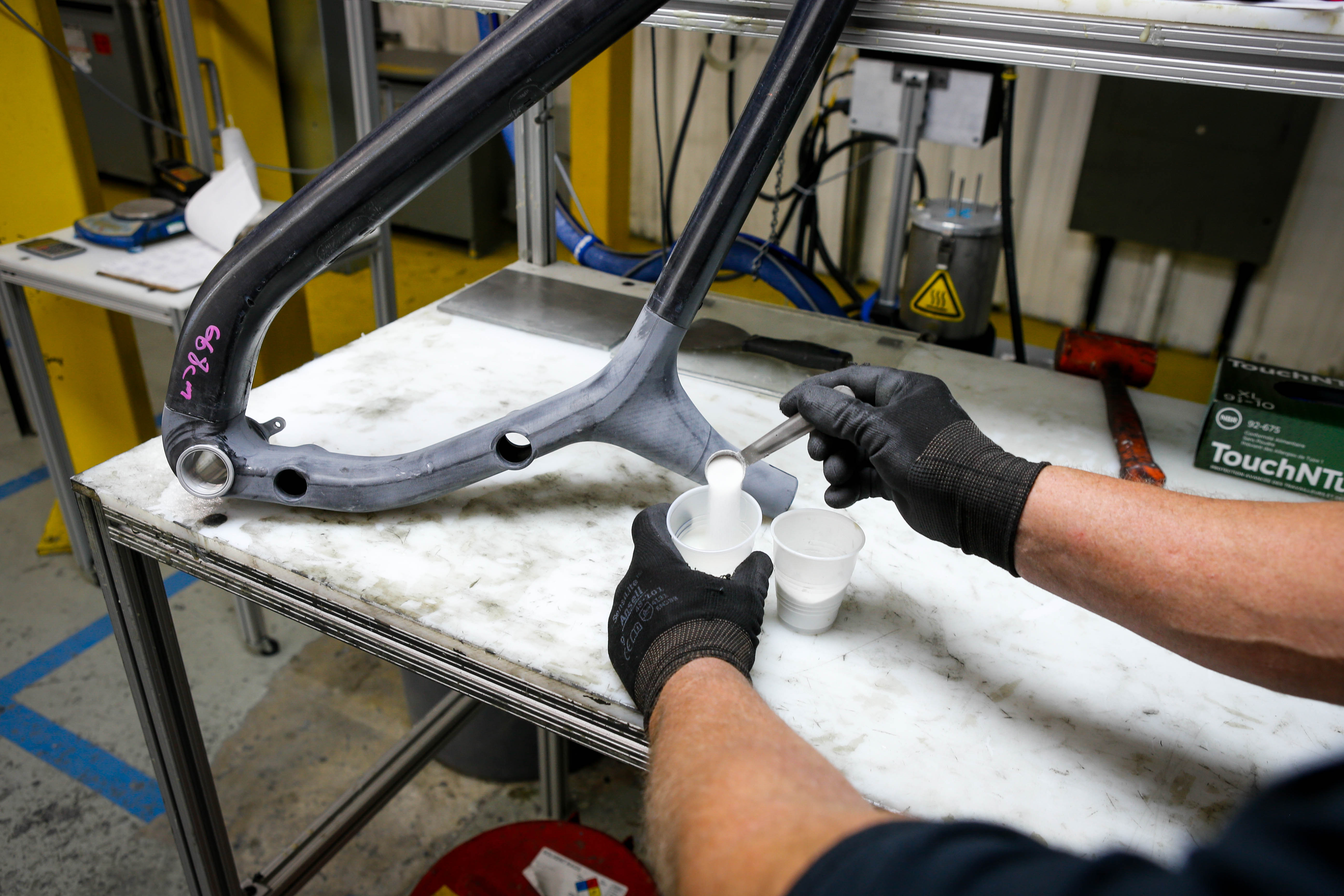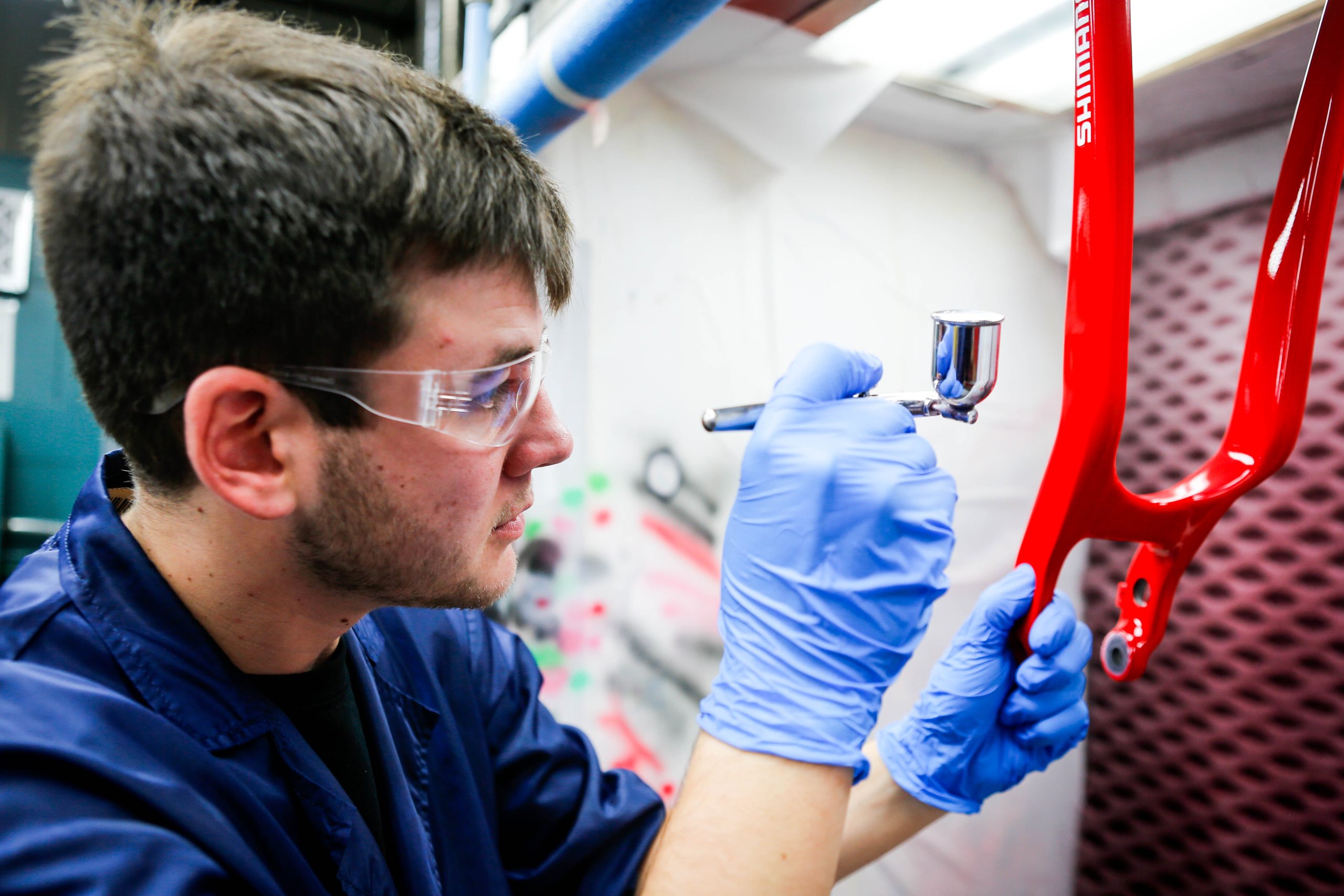 The goings-on in a paint shop had not been high on my list of priorities when visiting the brand that holds many world titles in several disciplines of bicycling. All I knew was that high end carbon road bikes were made and painted here, and that I was on a mission to report on technology not cosmetics.