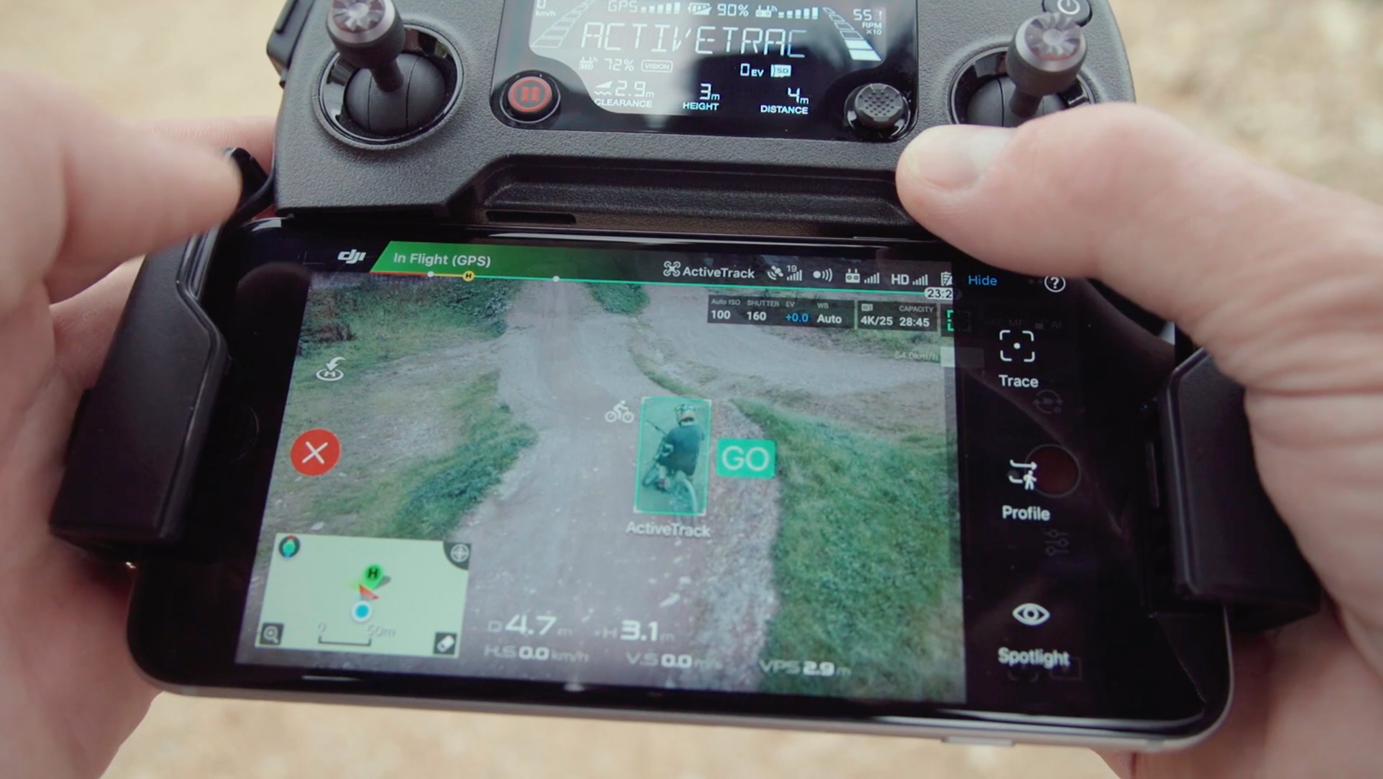 With Trace mode enabled, simply position yourself behind or in front of the rider before they set off. Now tap on the subject (or draw a box around them if they’re a long way from the camera) and the Mavic will follow them along the trail.