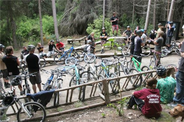 So the Really Railing Rally Race (or RRRR for short) and it’s gentlemen rocked up to the hub, the centre of 7 mile, with digital watches, phones and sun dials in pocket to time themselves on. Some local bike shop employees were still hanging from their christmas works do the night before… But come on… I couldn’t name them… That would be so unprofessional… (Cough – Pang, Si, cough cough, Tom, Dan, Webbo). The RRRR consists of self timing on select trails with the eventual winner being the one with the fastest accumulative time, just like a, erm, rally race. Before driving out to seven mile, I stopped at the BP garage to get some pre-LoG food as I was ravenous. That turned out to be a bad mistake. One Big Hearty Beef Roll, Lasagne, Caramel Slice and medium sized coffee later and I was not in what you would call “race condition”. The trails we were timing ourselves on were Kachoong, Cool Runnings, Cloud Burst, Grin and Holler 1 + 2 and IB55. Participants could do the trails in any order, but I went in the order stated above. Kachoong was great, however by the end of cool runnings I was feeling a little… over full shall we say? So much so that as I came into the hub, I walked over to the bike rack and promplty threw up my post work junk food binge. Chunk chunk chunk… Mmm. Lovely.