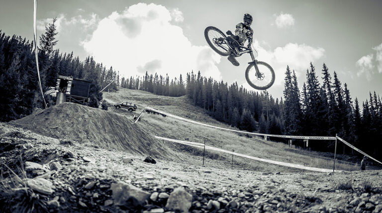 One thing’s for sure, it’s going to be a tight race! with open sections on the piste and some big senders the riders will be at full tilt pretty much all the way down with not much to slow them down. The top section is pretty straight right out of the new start hut, and the pace is set for the rest of this short run.