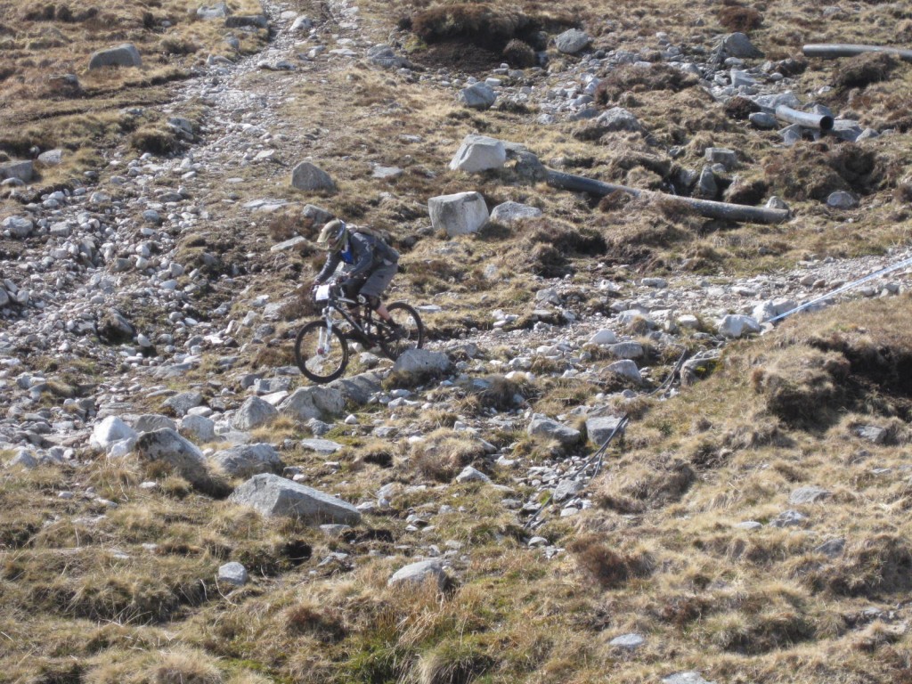 I wouldn’t recommend doing this yourselves, i did it to try it out, I expected the wheels to collapse and brakes to fail, I had a 40mm stem and riser bars and just treated it like a big BMX bike, stacks of fun, would have been better in the bogs if I didn’t have the back wheel so far out, this was super stable on the DH track and Jeep track but not so good for lifting the front wheel in the snow and bogs, what came out as well was riding in snow, Joe Barnes went really wide and rode round the chopped up snow, hit untouched snow, ready to pull the front wheel up when you hit a soft spot and away you go, seemed to work out alright for him 🙂