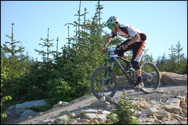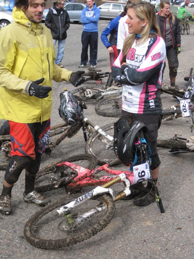 Joe Barnes and his Orange5, the winning bike, and a light weight build, Stan’s rims, continental tyres, looks like some XTR dive-train, fixed seat-post….this is a matter of debate, are gravity dropper seat-posts for everyone ? rumour was in the ladies final one jammed fully extended, many had them fitted from several brands from looking around at mud marks they all used them, handy yes, maybe the Mac-Avalanche isn’t long enough to worry about them. Joe ran fixed post, it’s a case here of finding the sweet spot of not so high you can do the steep start, but not so low you can still spin seated, mine was a tad high for the snow, but I can’t ride in snow anyway but was just right when I needed to spin.