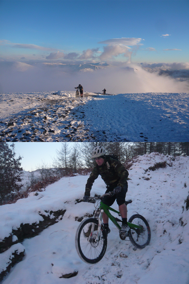 Chris Weir from Cumbria says: “Here’s a shot of my mate Adam Nolan riding in Borrowdale on Sunday, and a nice snowy scene nearing the top of Skiddaw on Saturday. It was howling an Artic gale up at the summit, but the views were unreal for England.”