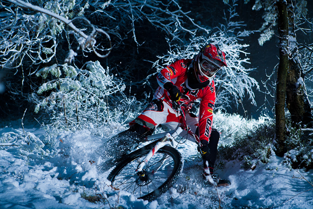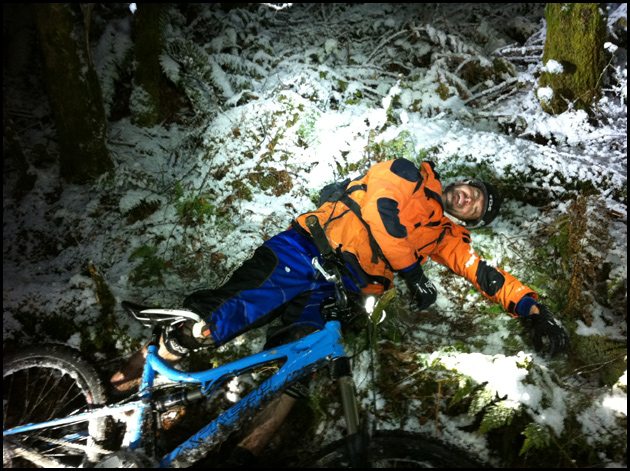 I don’t often post pictures of me on the web, but this is the only photo anybody took from Friday nights local-mates-race night enduro series in the snow.