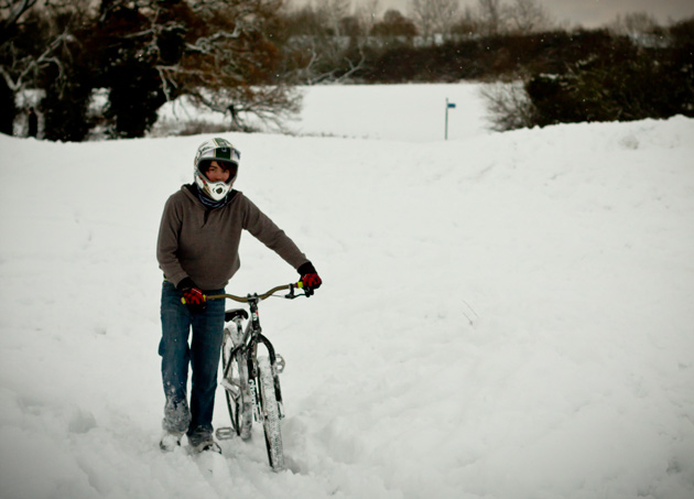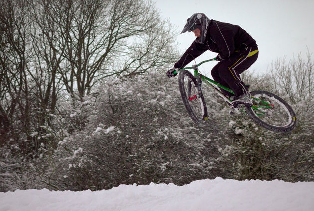 Jack Beckerson: “Here’s a snowy pic from a weekend ride. South of Guildford, me and my brother won’t let the snow get us off the hills!”