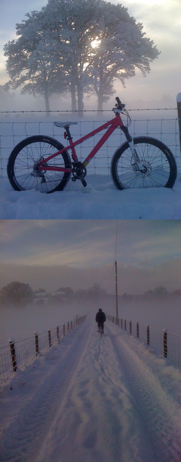 Jonathan Wilson, Crieff, Scotland: “Here are some pictures of my On One 456 carbon in the snow, it was too deep to ride and its started snowing again!”