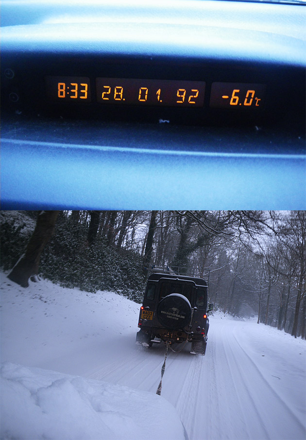 It was so cold at DirtHQ this morning that my van went back in time, then it snowed and we all got told to go home before we became trapped…still needed a tow though-Billy.