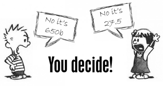 We’re fed up of companies calling the ‘in-between’ wheelsize different things, we just want to pick one and stick with it. But which one should we use? Is it 650b, or is it 27.5? You decide!