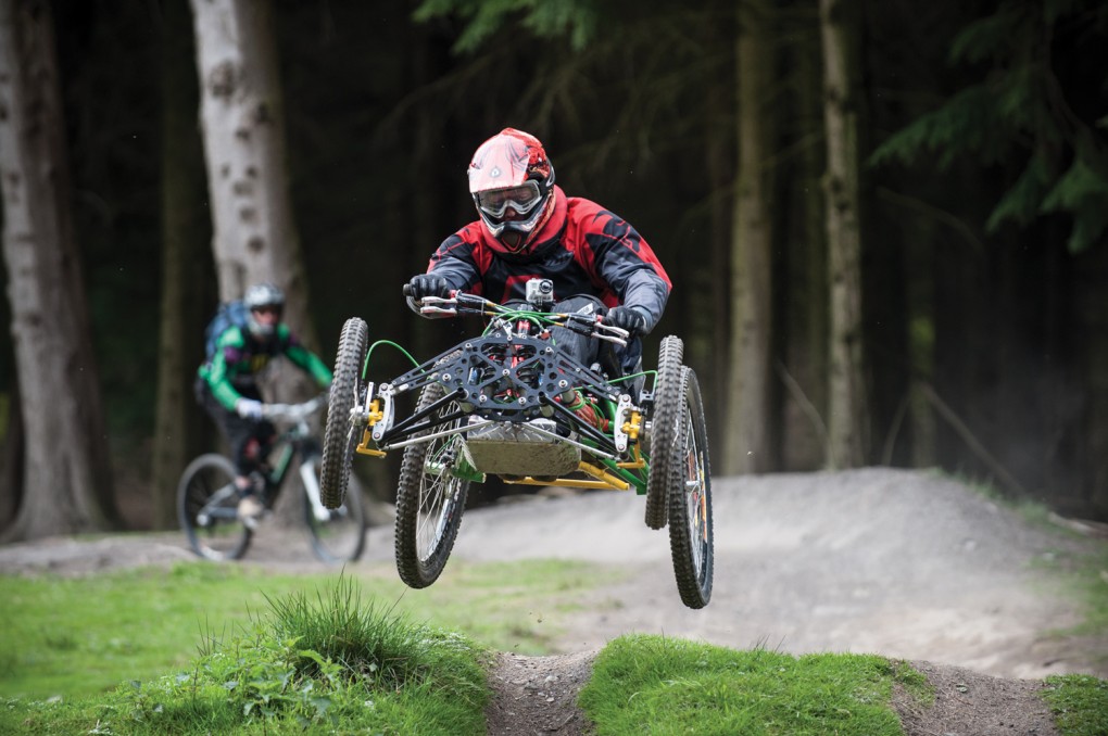 Phil finally adds, “I’d encourage anybody to have a go if you’ve got half the need for adrenaline as I have, and if you’re in a chair or not, it doesn’t really matter, this bike’s the perfect leveller. No pedals, whoever gets to the bottom and brakes last wins.”