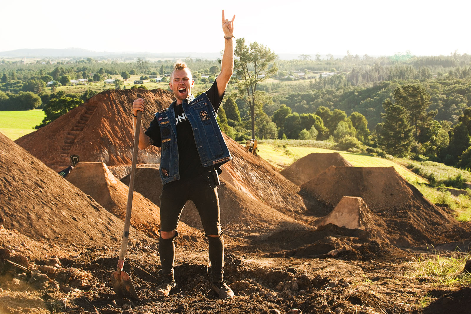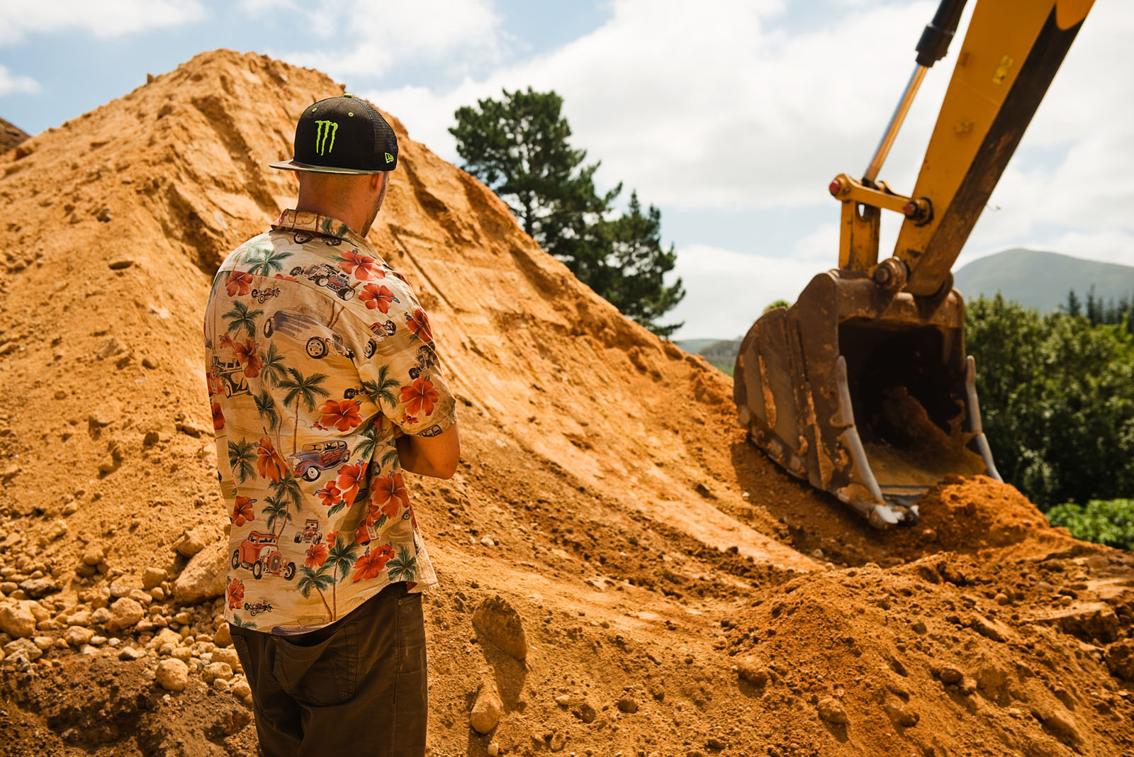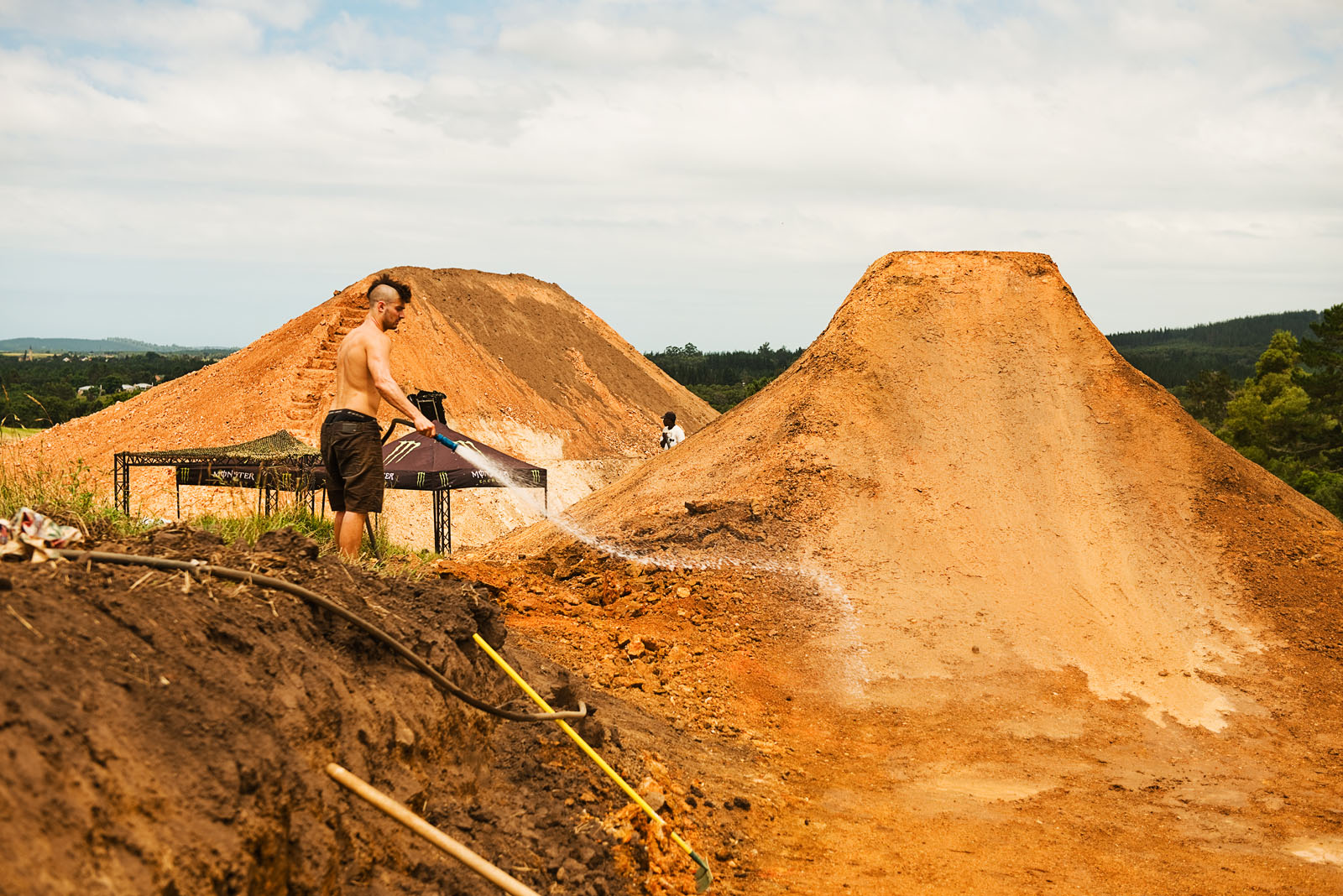 Sam (Reynolds) and Matt (Macduff) have been working day in and day out for the last month and finally their ultimate dirt playground is nearing completion. With the final touches going on over the next few days, including the installation of the 60ft roll in tour – Sam and Matt have finally got to reap the rewards of their labour and test the jumps for the first time.
