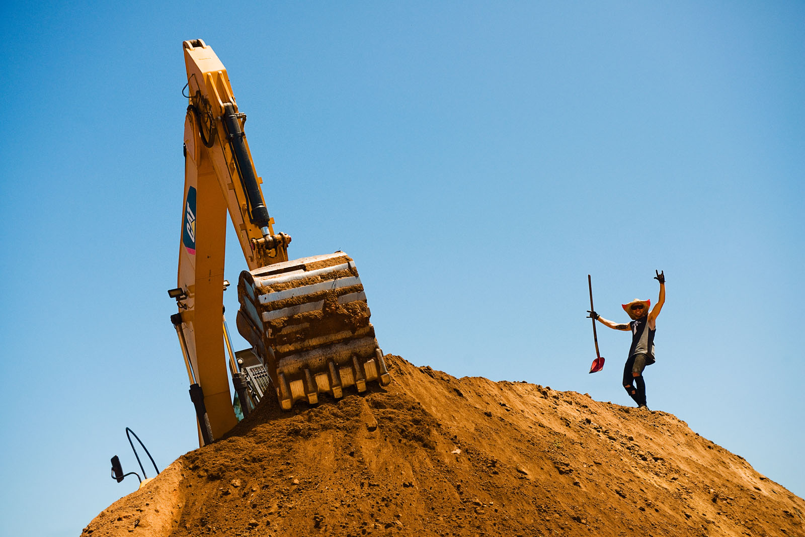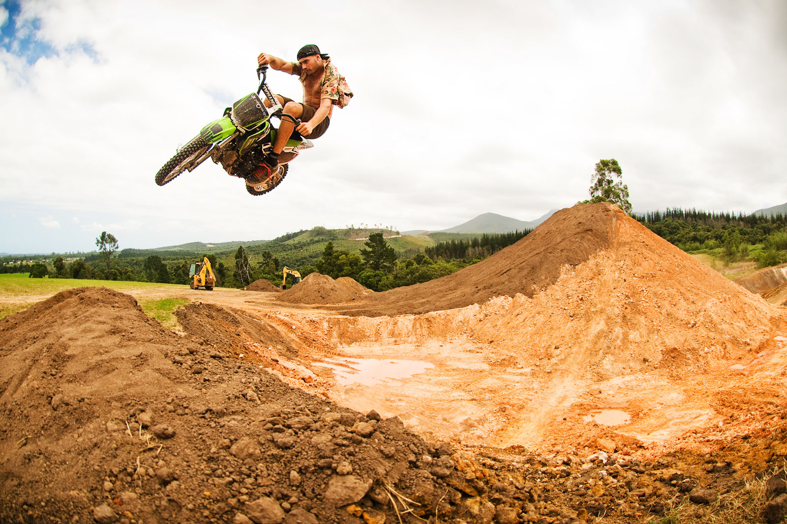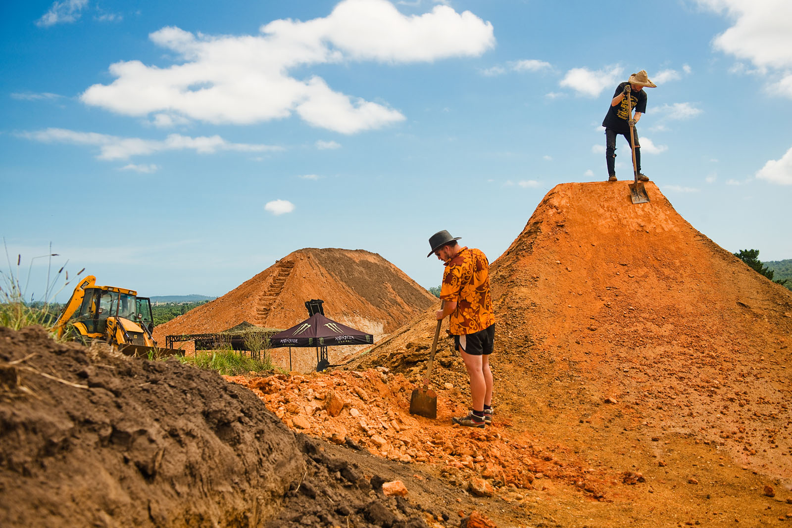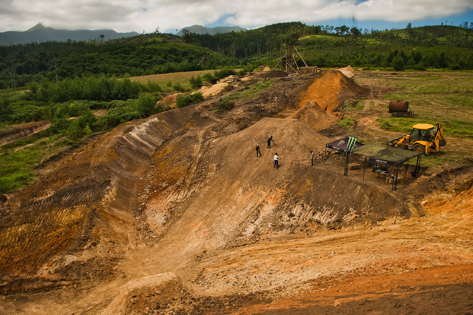 Sam (Reynolds) and Matt (Macduff) have been working day in and day out for the last month and finally their ultimate dirt playground is nearing completion. With the final touches going on over the next few days, including the installation of the 60ft roll in tour – Sam and Matt have finally got to reap the rewards of their labour and test the jumps for the first time.