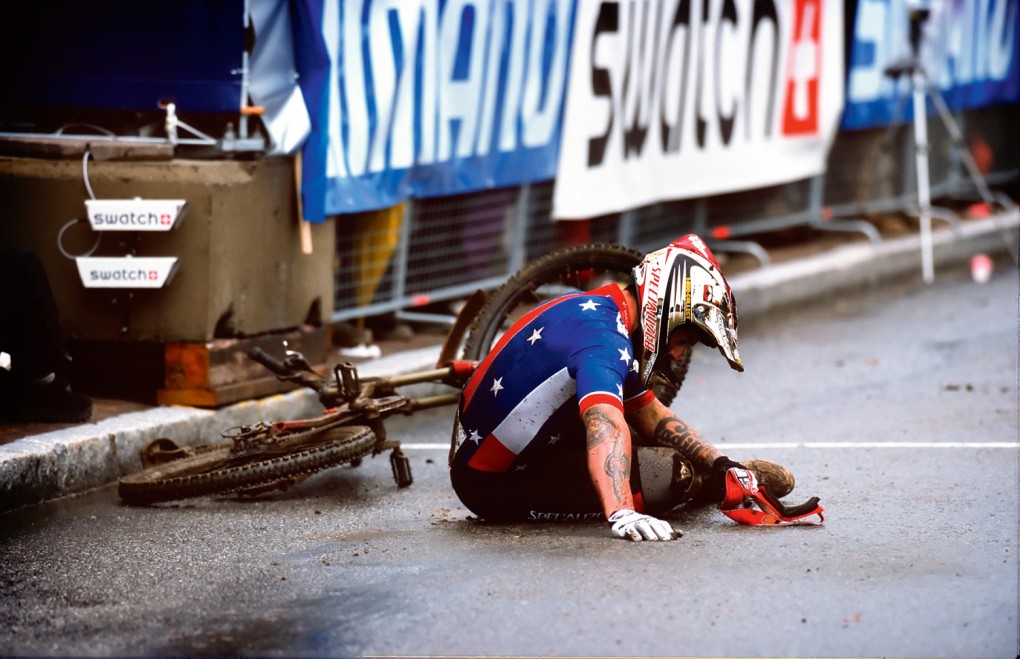 For those that were there, this is perhaps the abiding memory from the 1999 Worlds from Åre far in the north of Sweden. On a blood and thunder course, made slick and treacherous by constant rain, Shaun Palmer (who at the time was setting the downhill scene on fire) was up on the clock and looking to set the fastest time by more than a few seconds. Seventh out of the start gate and sandwiched between Credric Gracia and Nico Vouilloz, Palms appeared to impervious to the pressure and the conditions and was laying down a potentially gold medal winning run.