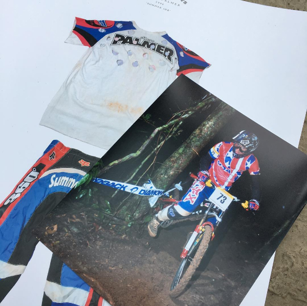 “OK, it’s happening-the 4th in the #dirtyjerseys poster series is live. This edition features king of mtb attitude, Mr Shaun Palmer’s Fox kit from Cairns 1996 plus ltd edition print of the man racing the 96 Worlds final.