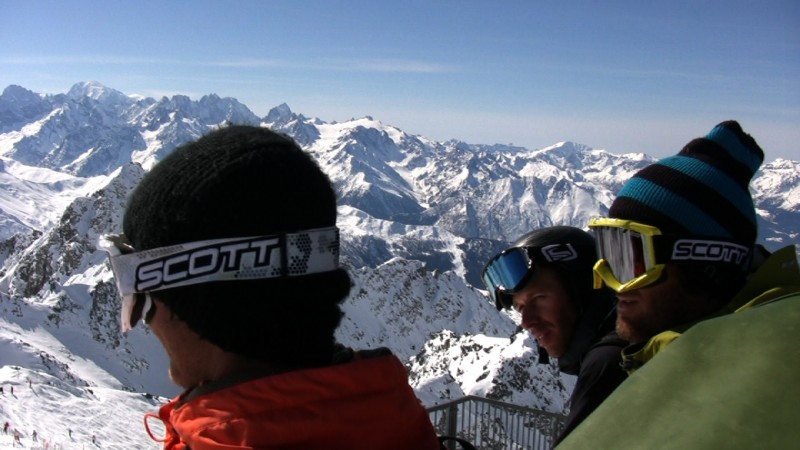 This is a shot of my buddy Nico to my right and my brother, Will, to my left on the top of the Mont Fort tram in Verbier