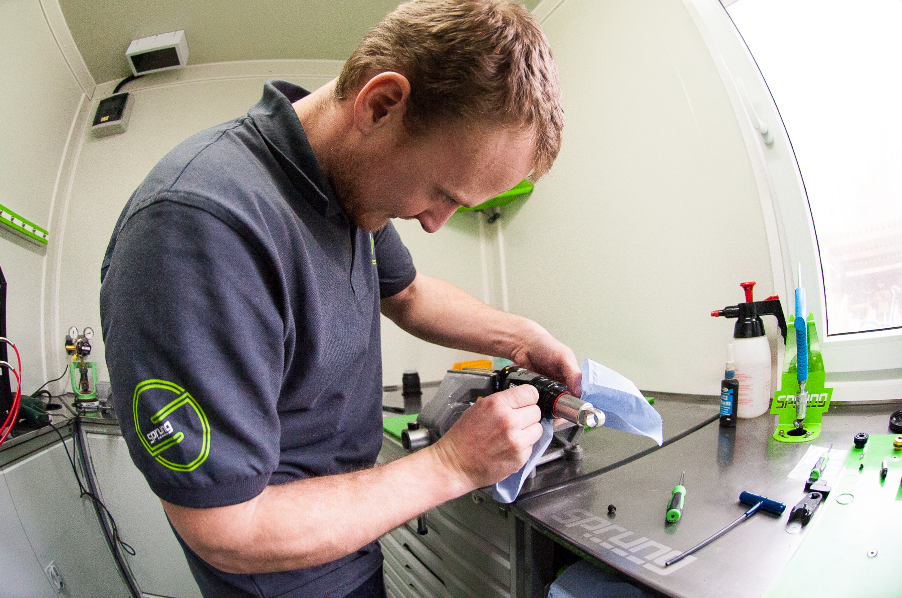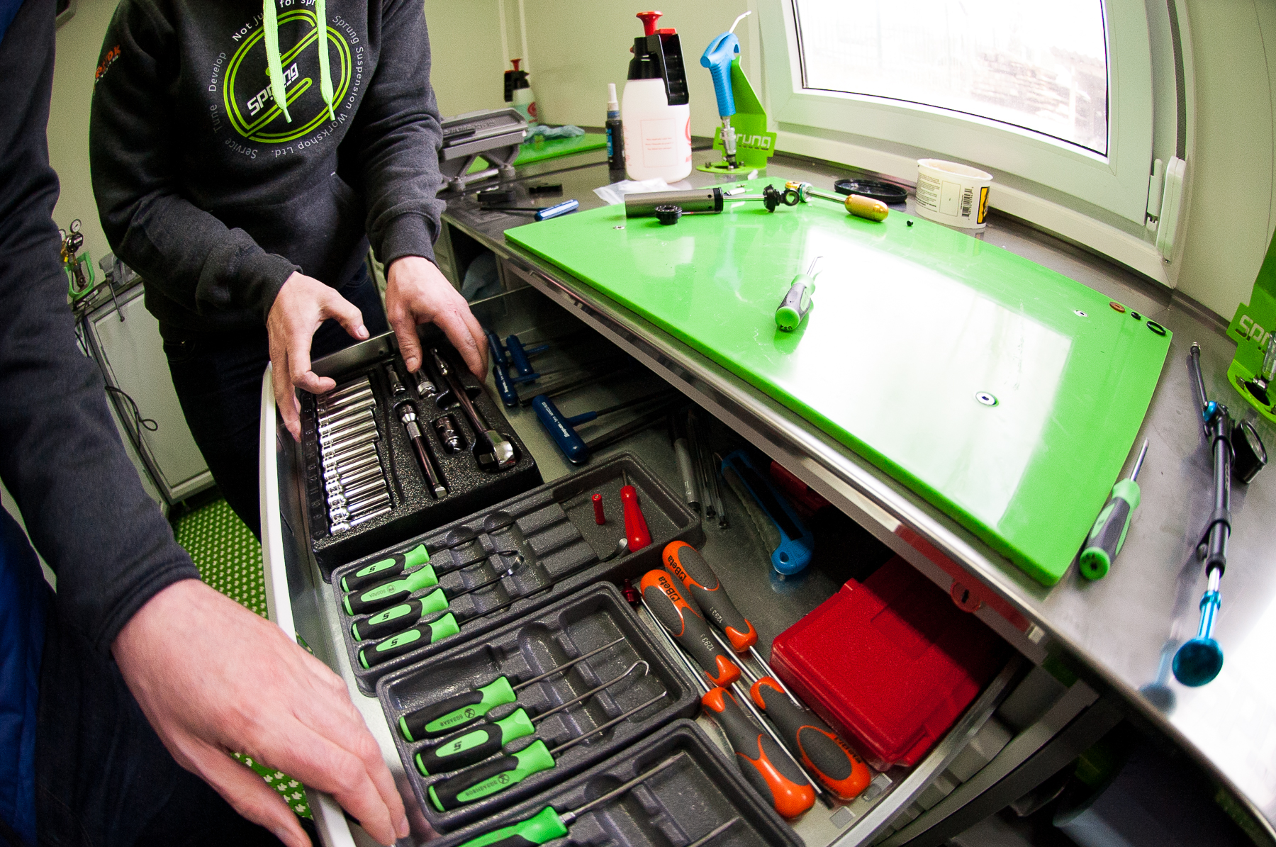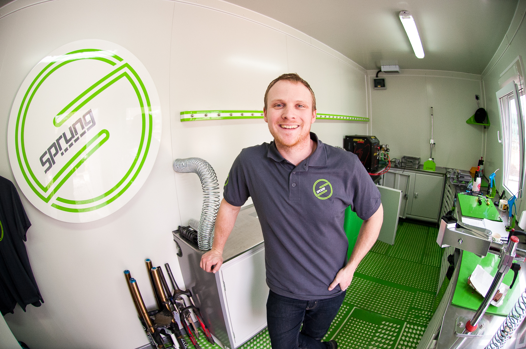 Roll into the Pedalabikeaway Centre, deep in the heart of the Forest of Dean on the gloucestershire/Wales border and you’ll hit a hive of mountainbike activity. It’s here that you’ll find Sprung, a new servicing and tuning suspension specialist, set up and run by Jake Ireland. We popped in for a chat, a brew and a quick tune up on a rear shock.