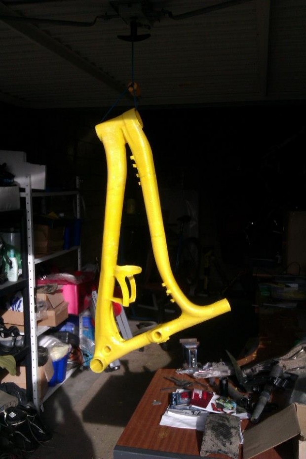 The latest issue of Dirt has an article I wrote about Adrian ‘Carbon Wasp’ Smith. The piece explains that Smith has been building his own bikes for years and that’s he’s been spending an unhealthy amount of time in his self inflicted carbon dungeon. Smith makes his own DIY full carbon full suss machines which ride much more beautifully than they look. In the latest iteration of ‘the carbon wasp’ he has embraced a new technique, he has Printed a bike. Literally. He’s used rapid prototyping technology, also known as 3D printing, and a printer he bought online for 400 quid. This enabled him to produce a new bike, specifically for the interview, in only 2 weeks (while working full time and going on holiday). The printed core is assembled then he wraps with carbon fibre to give it rigidity and strength, but as the article explains, it’s not as high tech as it sounds but works amazingly well.