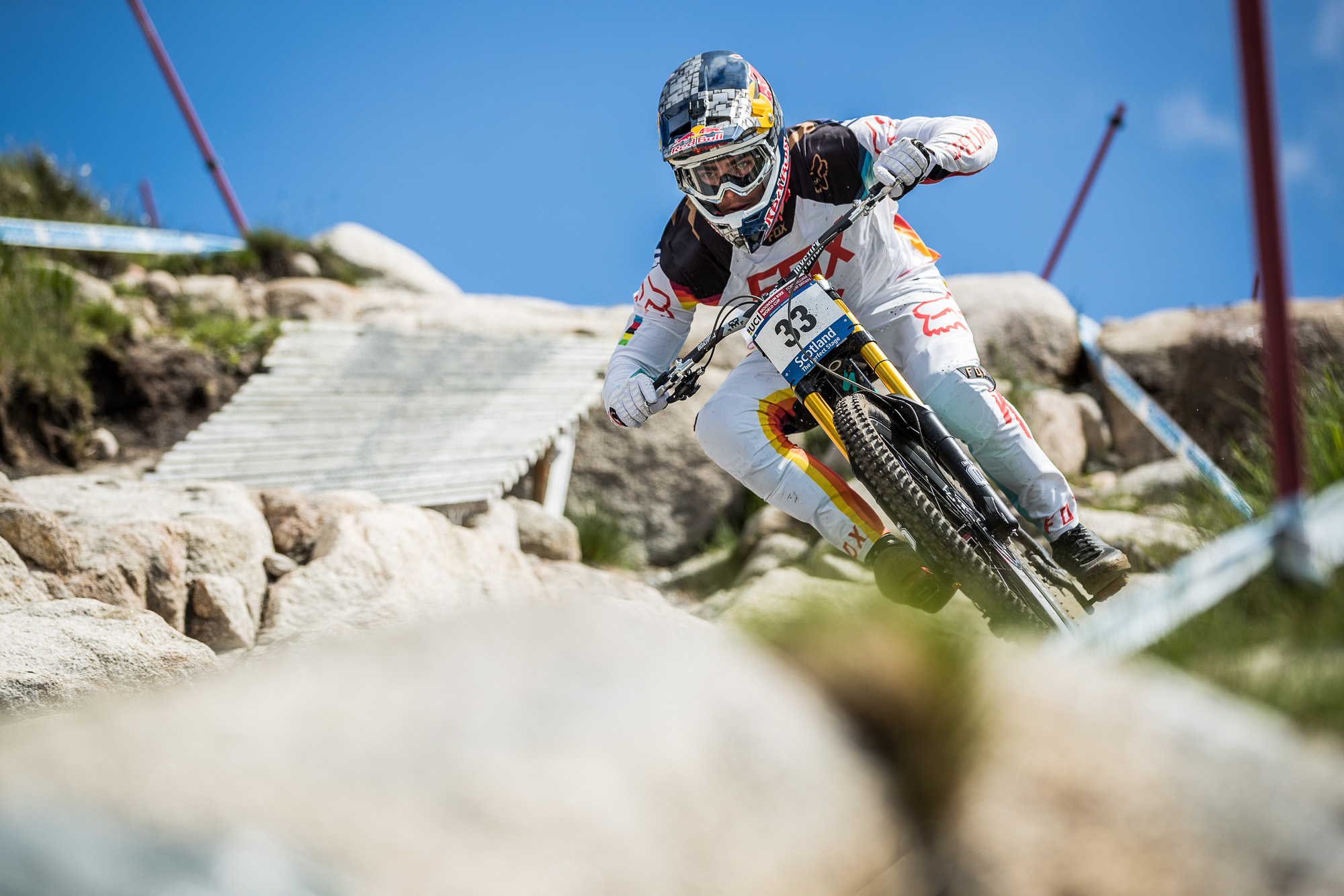 From this we learn that the bitching might be better aimed at track technicality than wheel size, an arms race in which many have been caught napping. Bikes are evolving but not the tracks it seems. Loic Bruni has been very vocal that his dislike of 29″ wheels is that it makes things easier and not loose and cool to watch, and also that it is largely because we are not providing the challenge for the wheel size. Loic and many riders say “the tracks are getting easier, it’s not the direction I want the sport to go in.” It’s true if tracks had more of that middle section Fort than the ‘cross country’ and ‘motorway’ lower sections then the discussions would be about pure riding rather than equipment. Technical steep terrain would bring strategy into racing where teams would have decide on wheel size rather than get psyched out by the current state of affairs where the bigger wheels are at a clear advantage.