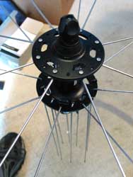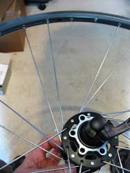 There are all sorts of fancy spoke patterns out there, but there’s no very good reason to use anything but regular three-cross spoking so that’s what we’re doing here. We’re doing a front wheel, but the principle is the same for rears.
