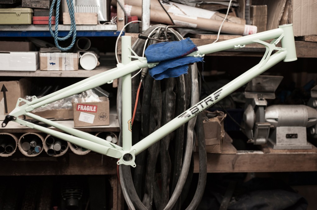 We visited BTR before the move, and took a step inside their workspace in Worthing. The workshop was more of a garden shed at the bottom of Burf’s garden, but it’s not only a workshop. It is also the design studio and also Tam’s bedroom. Going inside this was like stepping inside the raddest studio flat I’ve ever been in. They’ve made fireplace to keep the workshop warm in the winter months. Most flats have coat hooks, this one has bike hooks, with bikes past, present and future hanging off them. The office area was covered in little sketches, numbers and measurements. Their kitchen area consisted of a kettle and a couple of tea bags. The walls were coated in race number boards, old bike parts, helmets, etc. The bed was a plank of wood on top of a shelving unit, with a mattress, sleeping bag and an electric blanket. Beyond that was the workshop, full of handmade jigs, brazing torches, clamps, tubes and some pretty hefty machinery.