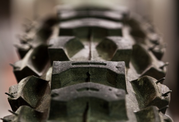 Rolling resistance is the force needed to actually push the tyre along the ground. Tyres with minimal tread blocks have low rolling resistance, so will be quicker over hard packed ground than a more aggressive tread pattern but usually don’t offer much grip on loose surfaces. This becomes a problem when you hit soft or muddy conditions where the tyre can’t dig in and provide grip. That’s not a disaster for a few metres, but you will soon get fed up with the lack of grip if your frequently ride though mud or soft, wet ground.