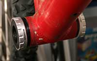 5. Once both cups are in you should have something looking like this. You can see how the bearings are carried outboard of the shell. Freed from the size constraints of having to fit inside the shell they can be a lot bigger, accommodating a much bigger axle. They’re also spaced considerably more widely, also good news for stiffness and durability.