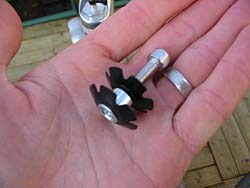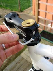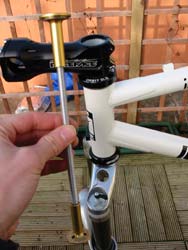 8. If you share our dislike of the SFN, get hold of one of the several varieties of head-lock device available. They’re essentially a big bolt that runs right through the steerer with the added benefit of keeping dirt out of the bottom of the steerer. This one’s a Filthy Ed-Loc, which is very light thanks to the alloy rod used. X-Lite, USE, Azonics and others all do their own versions. You’ll need to cut the rod to length but there’s usually plenty of leeway.