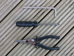 1. This compact set of tools will see you right for the front mech. Cross-head screwdriver, 5mm Allen key, pliers.