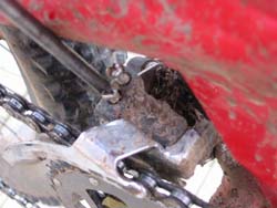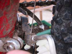 6. At this point you may notice that you’ve got some sort of new-fangled full suspension bike complete with a gert big swingarm that gets right in the way of the adjuster screws. If this is the case, you’ll have to use some sort of wholly inappropriate tool like a penknife or something. Not pretty, but it works. Kind of.