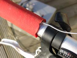 2. First step is to take the old shifters off. To do this you’ll need to get the grips off. Work an old spoke between the grip and the bar, spray some lube in there and work the spoke round until the grip can be slid off. If your grips have closed ends you’ll need to loosen the clamp bolts on the shifter and brake lever and move them inboard a little so you can make with some spoke action from the inside of the grip.