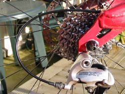 7. The cables will almost certainly already be fitted to the shifters, so just thread the end through all the cable housing and stops on the frame and clamp the end at the mech. Don’t overtighten the clamp just yet. Make sure all the housing is pushed right in to the stops on the frame and the adjusters at the mech and shifter. Then all that’s left is to set up the shifting on the rear and front mechs and the job’s done. Oh, except for finishing off the cable ends by crimping on some end caps. They’ll stop the cable unravelling.