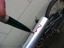 4. Fitting the post to the bike is pretty straightforward. The main thing is to make sure you’ve got the right size. Seatposts are available in loads of diameters, with 26.8mm, 27.0mm and 27.2mm the most common. If you’re replacing a post you should find that the diameter is stamped on the old one. If you’re building up a bare frame, contact the supplier for the right size. Don’t make do with the wrong size – 0.2mm difference may not sound a lot, but it’s enough to do damage… With the right size post to hand, grease up the bit that’ll be in the frame.