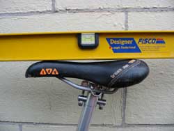 From there, go ride and fiddle with the fore-and-aft position until things are comfy. There are no hard-and-fast rules, although most people run their saddles either level or very slightly nose-down. Also bear in mind that you tend to try and sit in a comfy position regardless of where the saddle is, so if you seem to be sitting right on the front of the saddle you probably want to move the saddle forwards and vice versa.