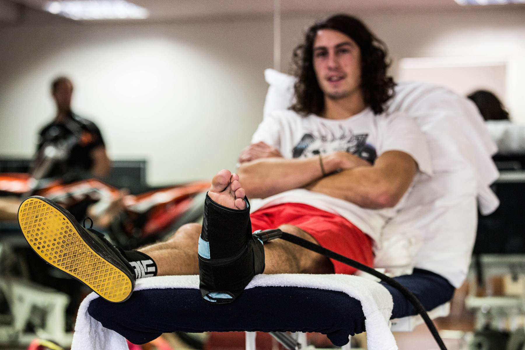 Josh: I’ve been on my zero weight-bearing, so just been in the gym with these boys trying to stop that side, my left leg, deteriorating and just keeping up with the rest of it. Then getting some physio work on my foot, trying to keep my ankle moving and stuff, and trying to blow my Jaguar up…