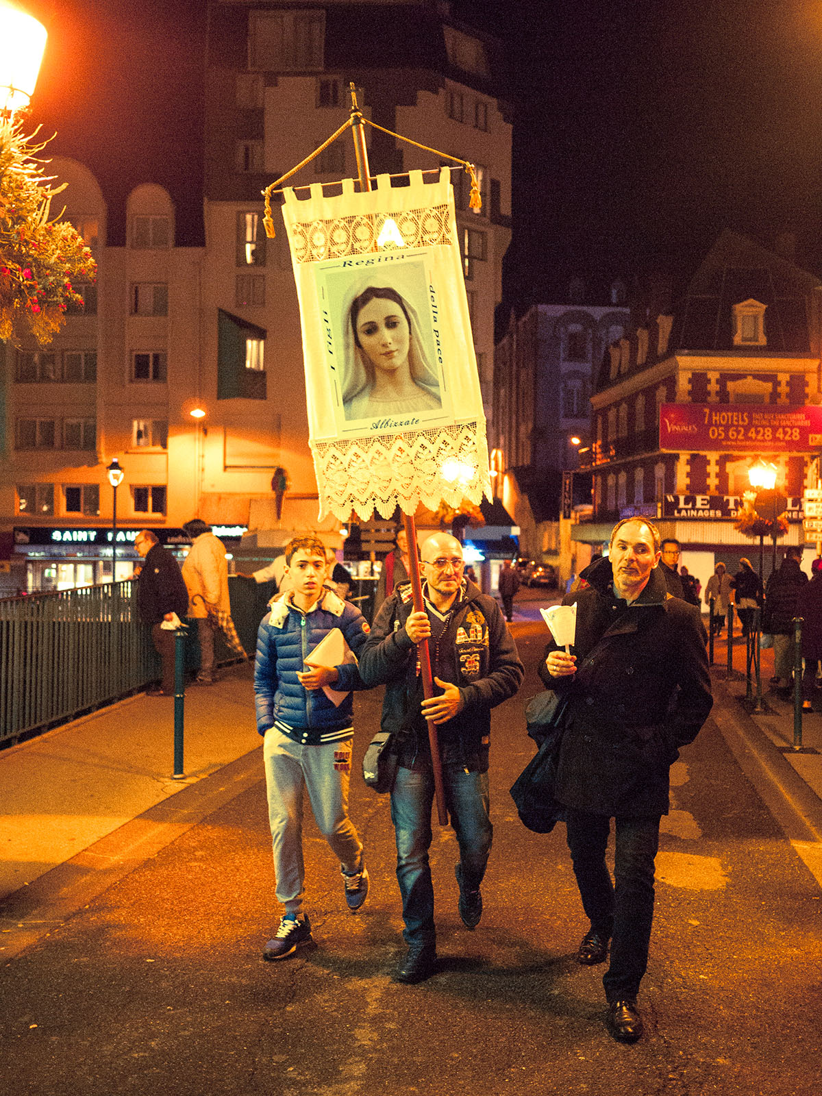 We had driven over a thousand miles of the finest British potholes and perfect French tarmac to arrive bleary eyed at a destination that would warrant a double take at the best of times. Lourdes, you see, is something of a theme park for Catholicism, a tourist destination founded on the basis of performing miracles, built on by way of shameless capitalism. And I don’t mean any bad to the people of faith whose unfaltering devotion to a supreme being bring them, in some cases, from the far corners of the planet in search of salvation and a nod from him up there (they are in town to visit the grotto where reported ‘miracle’ sightings of Mary took place in the 19th century, a visit to the site apparently helping to cure any ailments). I am talking about the neon signs, the endless sprawl of tourist trap bars and eateries and, above all, the never-ending assault of overpriced tat for sale.