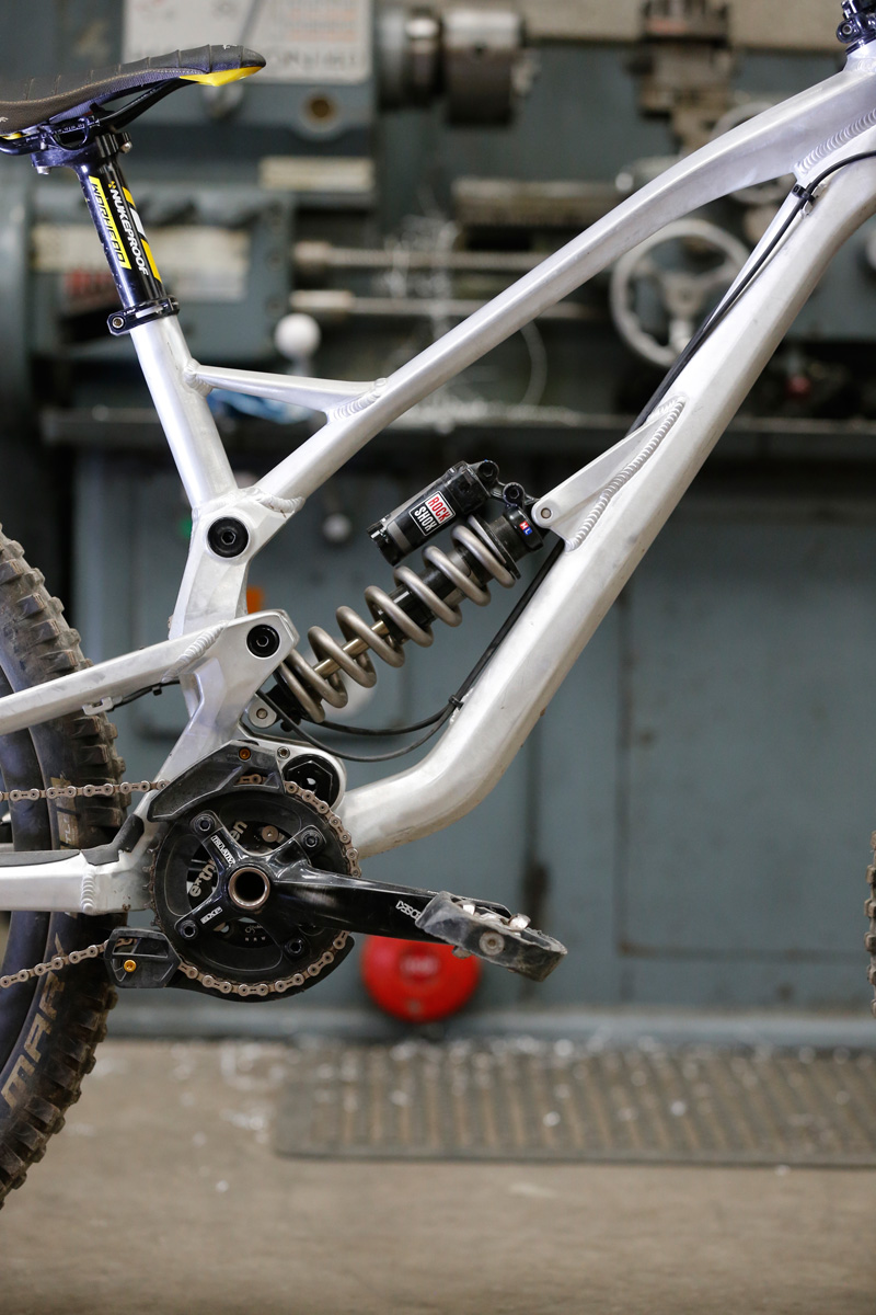 Hill’s win was on a modified 26″ Pulse. Beckett had made a custom link part and with Rockshox providing a different length shock and the larger fork, Mavic the wheels the bike was now a winner. In terms of suspension the Pulse retains all it former characteristics but with tweaks to manage the effect of wheel size.