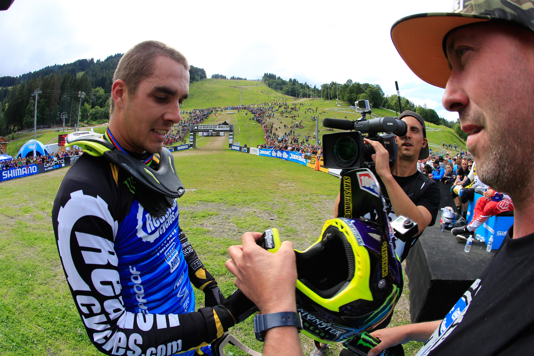 Yet all eyes were on Hill. He narrowly missed out on Fort William after a mechanical on the lower part of the course. Only weeks before Hill visited us here in Monmouth and said “its going to happen.” On the 2nd August 2014 it did. At the famous Mt Sainte Anne world cup event Hill won his first world cup after five years, Nukeproof’s first. Within a month he had win 13 wrapped up in Meribel.