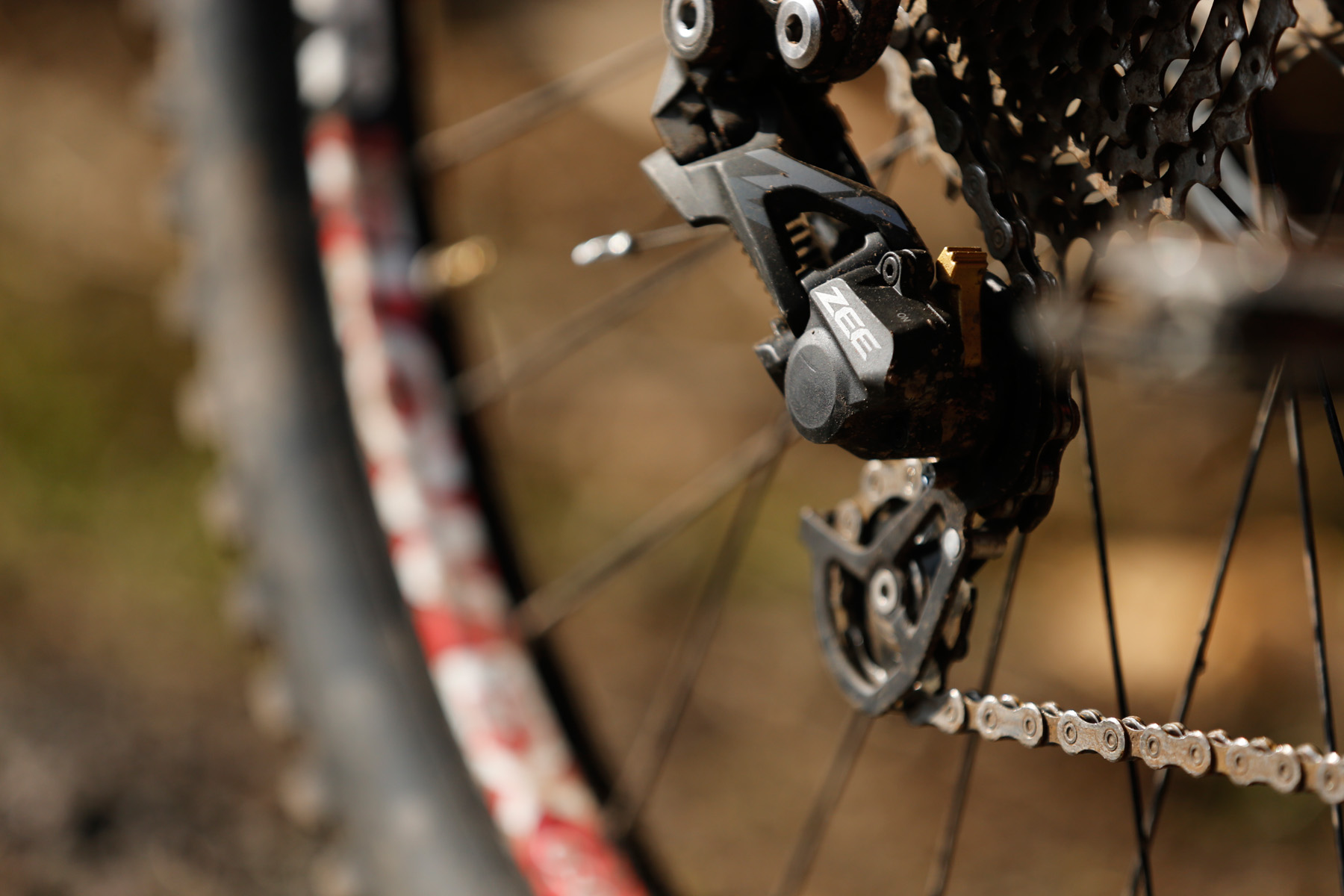 COMPONENTRY. The 11-36 cassette and 30T chainring is one of the few bikes without what seems to have become standard Sram drivetrain builds these days. Shimano Zee does the shifting and Race Face does the cranking and it has never missed a beat. The bike is also anchored with Shimano XT and rolls on Lancashire hubs – from Barnoldswick (apparently the longest place name in the UK not to repeat any letters) – Hope by the way.
