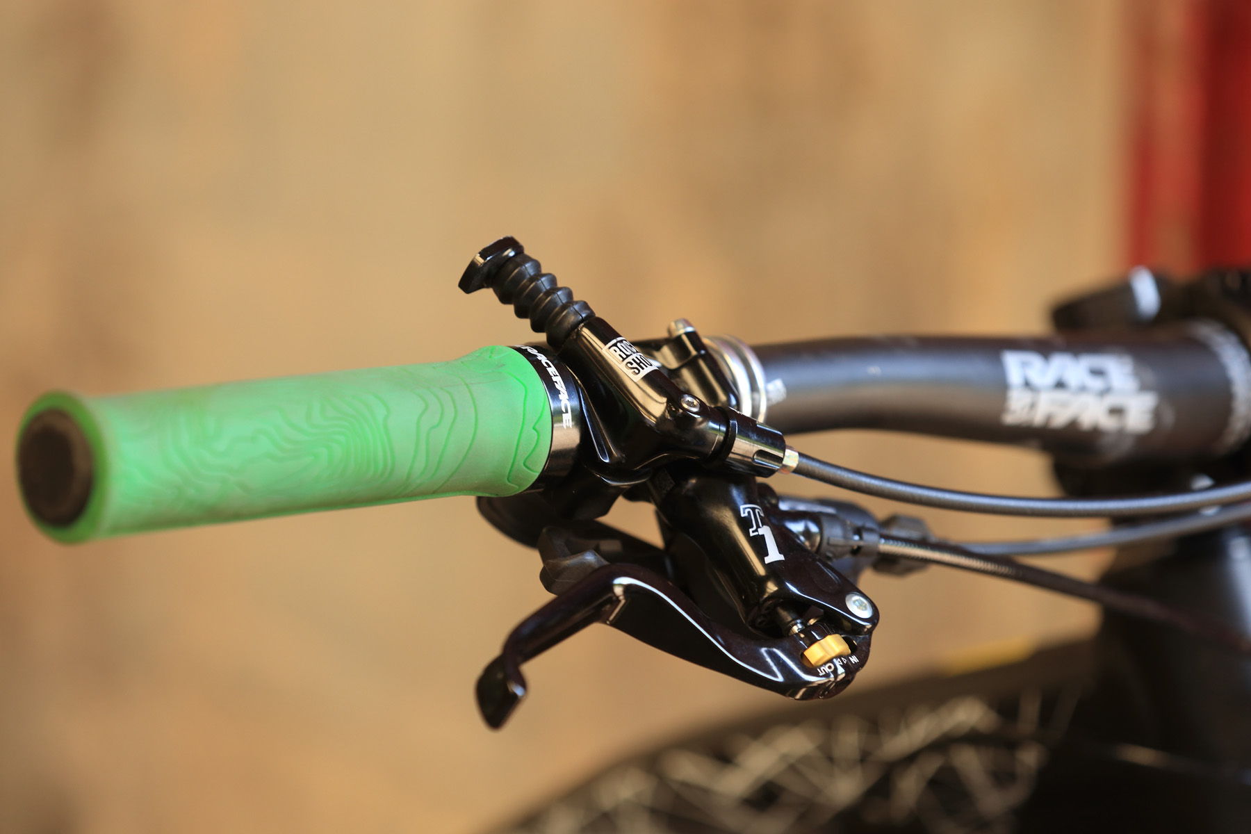 Only the brakes. They are too harsh. Well there was the rear shock fitting which was a bit of a faff on the lower mount too, but you simply mount the top first then insert the lower shock bolt and one spacer before holding the other spacer in place and sliding the shock between the two. It just seems a bit crude. The O–ring on the shock valve stem broke as well which meant air leaked. Jungle, the UK distributors, say they will be fully set–up to carry spares pretty soon. Oh, well there was the rattle of brake hose on carbon bar and the rear tyre feels lightly under par for the work it will be required to do (we had to swap it). There’s also a need to work on rear end clatter when pressing on. Oh and the one extra size. So I guess a few things need tidying to give it a ten.
