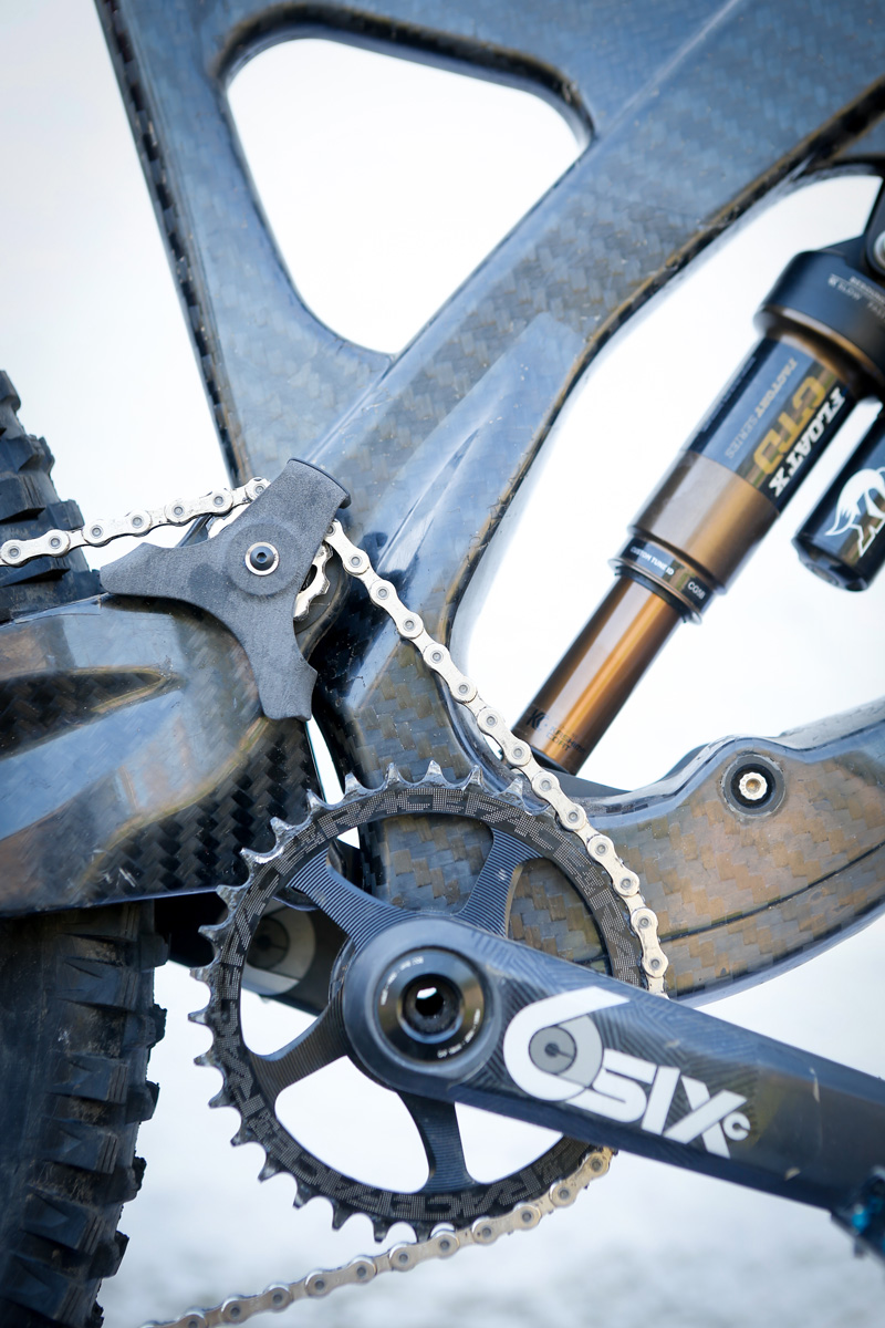 It’s easy to see Honda RN01 and V Process inspiration in the design you see here, with its flowing lines and single high pivot with idler. What’s less easy to see at first glance is the beautifully worked linkage that drives the rear damper or the inspired geometry that is almost impossible to fault.