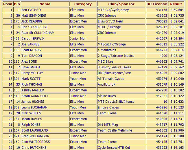 25 10 Chris HUTCHENS Elite Men Cycle Jersey/MTB Cut 433653 3:14.163