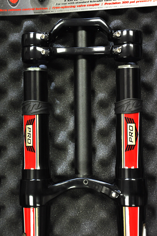 Updates for 2010, includes an improved two-chamber large-volume low-pressure air spring which simplifies set-up and optimizes fork performance. The air spring pressure is increased and decreased using a single valve at the top of the fork, no more valve down by brake rotor. The pressure in the two chambers auto-equalizes when a shock pump is connected. Just add and/or bleed off air from the top. Also, all mount hardware has a better grade bolt with a deeper broach (tool interface) and the brake cable guide path has been improved.