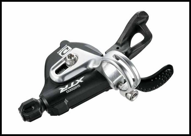 The new XTR offers an integrated mount system for the brake lever and shift lever, named “I-Spec”. With I-Spec, only one clamp band is needed which looks good and saves space on the handlebar besides saving around 10g. Horizontal micro-adjustment is possible for a customized set-up.