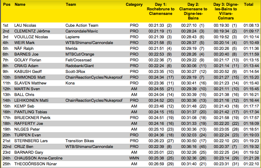 Full results www.trans-provence.com/results2012/overall/after_day3.html